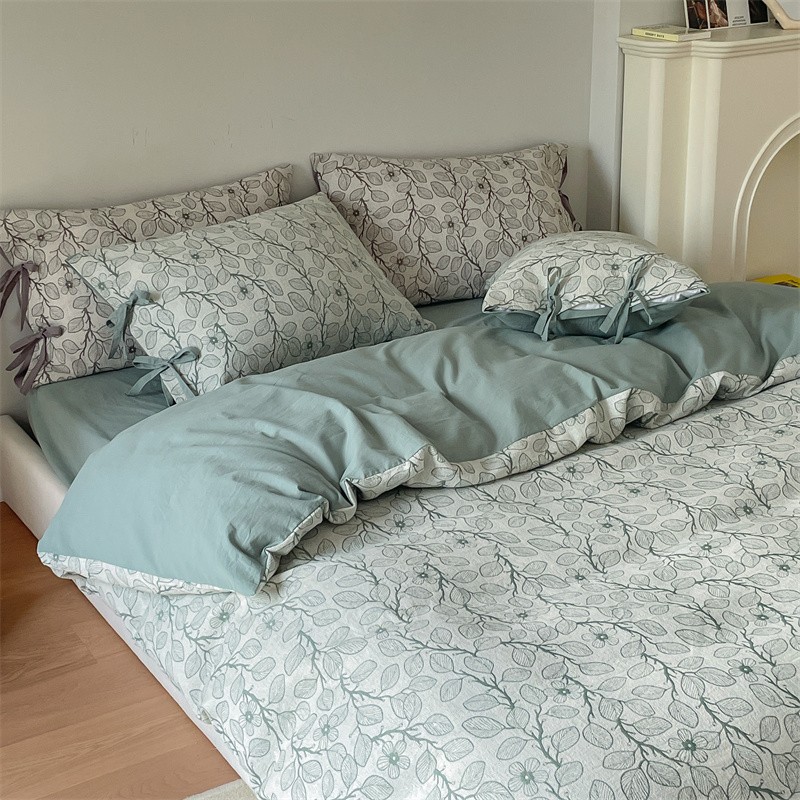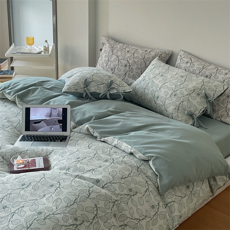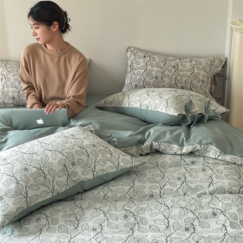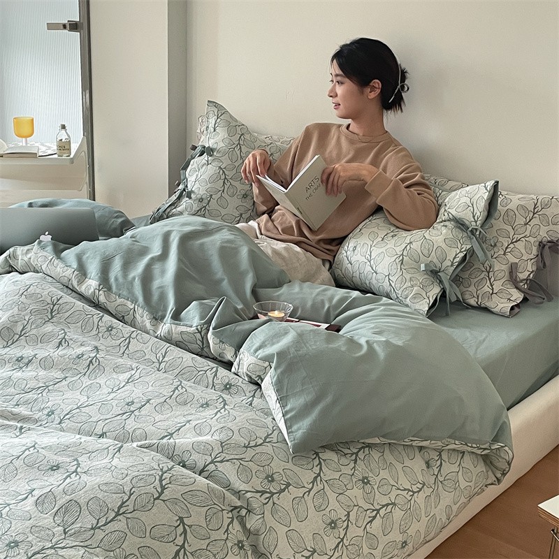 (总)华超针织 2025新款亲肤舒适全棉纯棉针织五件套四件套,奶糖+樱桃,杏粉+花田,杏灰+玫瑰