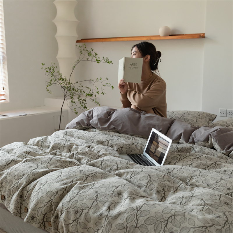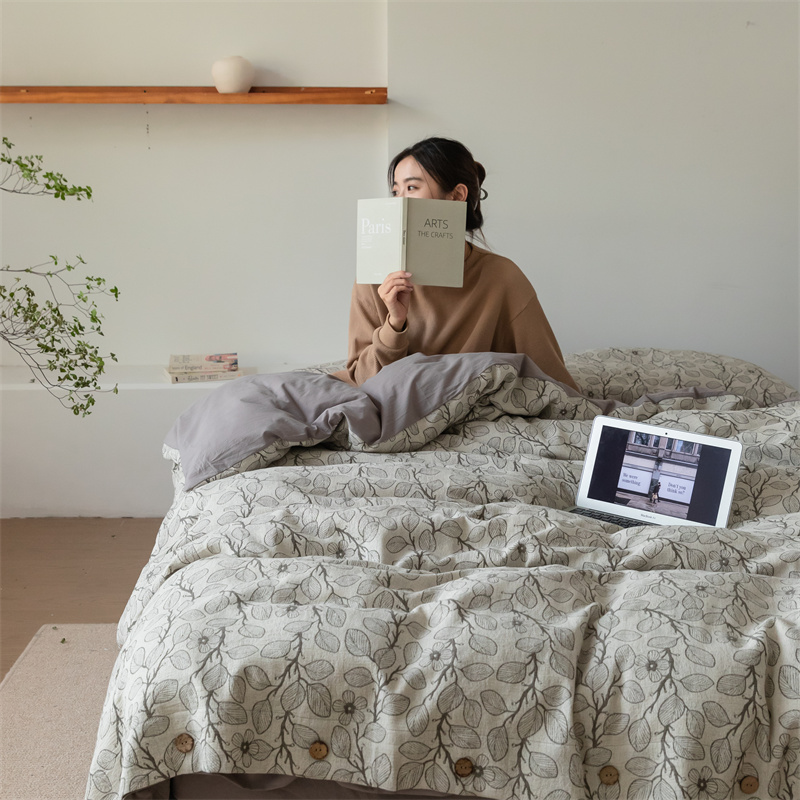 商品名称:华超针织 2022新款色织空气感大提花四件套-纽扣款 暮云 纽扣款