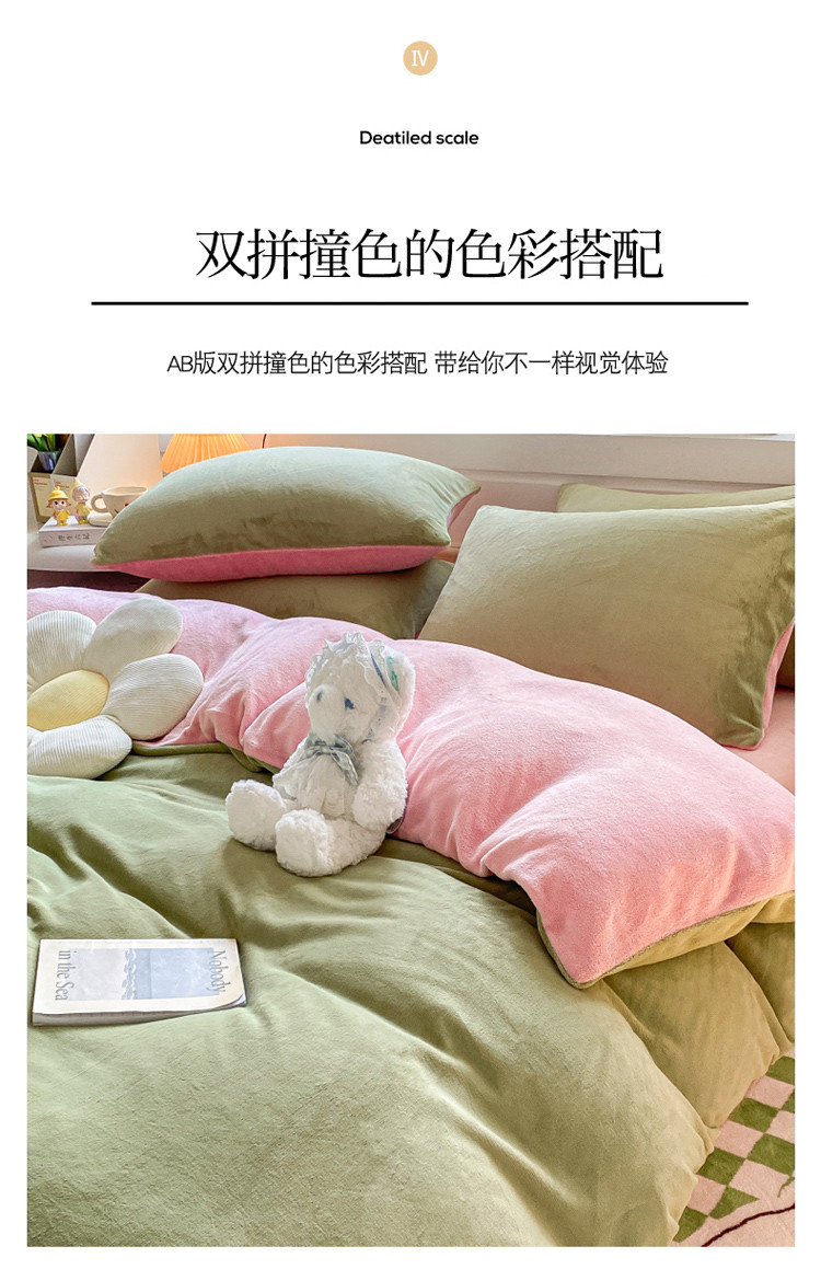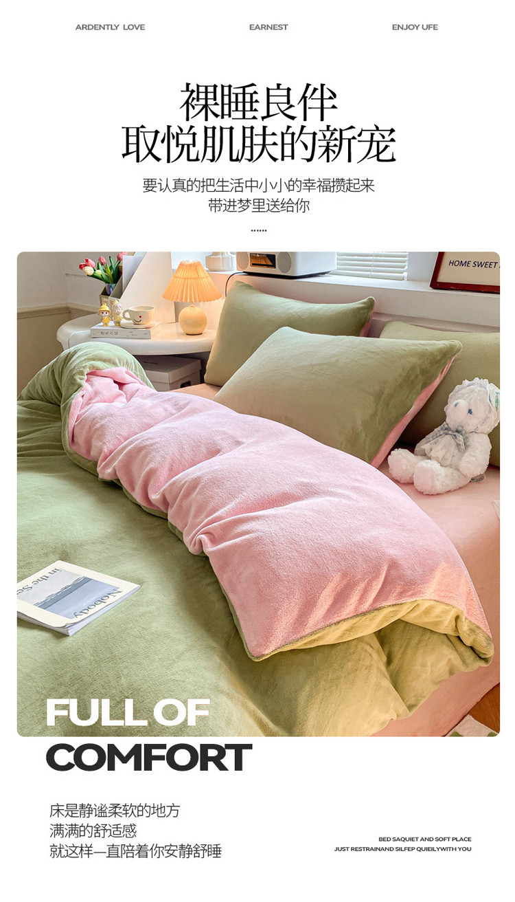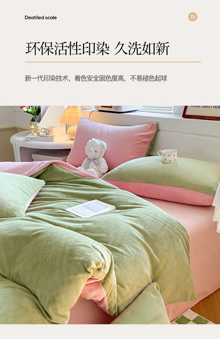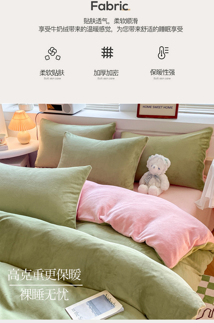 商品名称:寐居 2022新款高克重拼色牛奶绒单被套 抹茶草莓