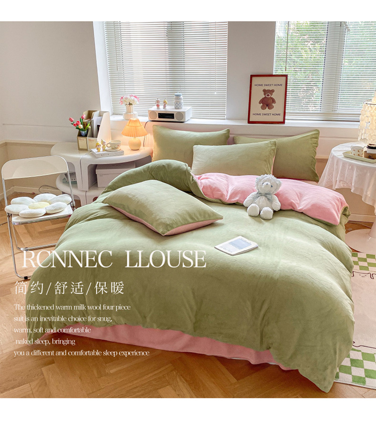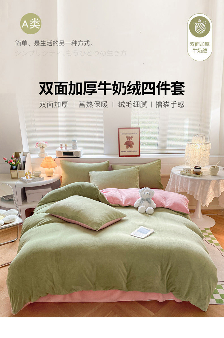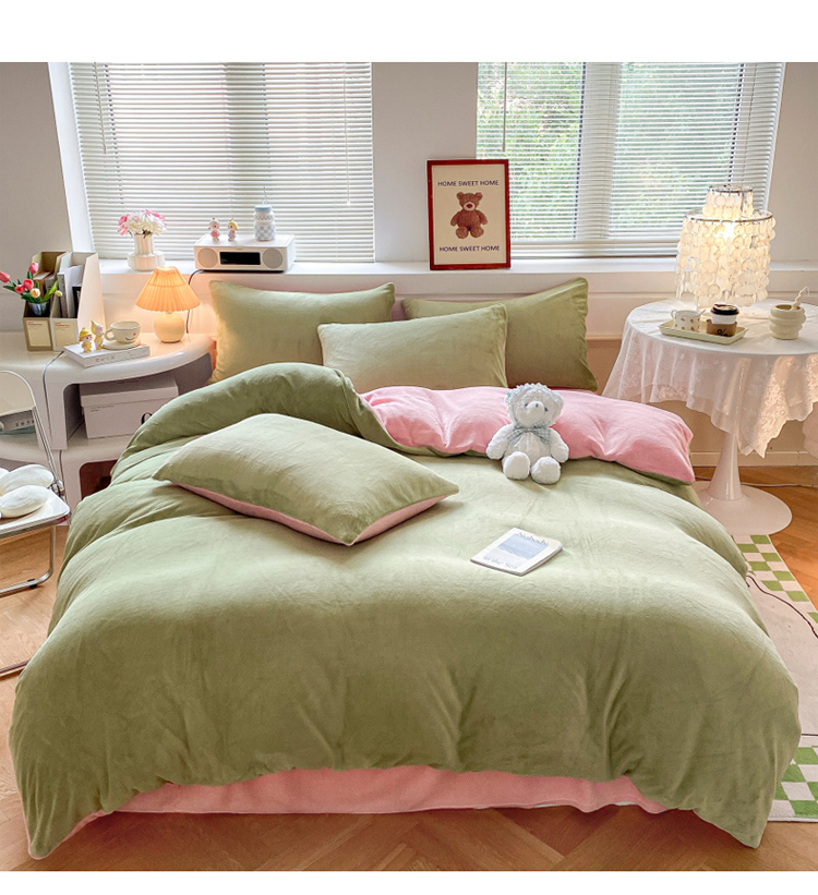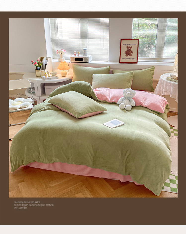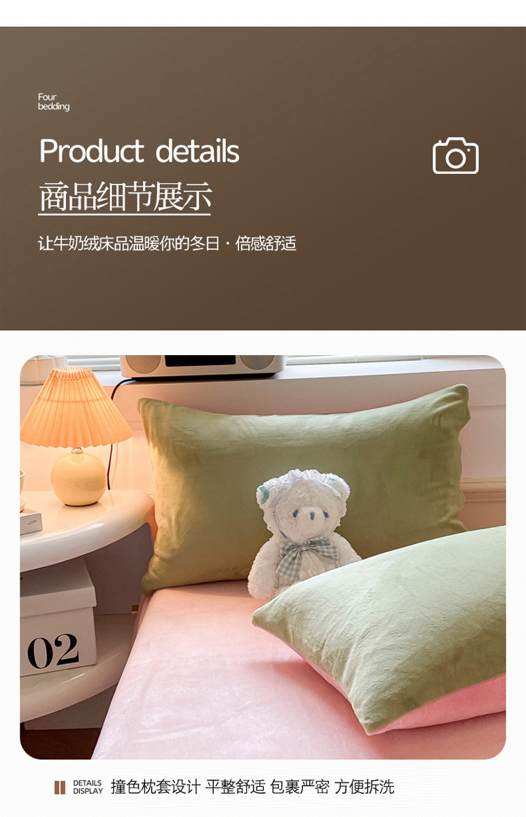 商品名称:寐居 2022新款高克重拼色牛奶绒单被套 抹茶草莓