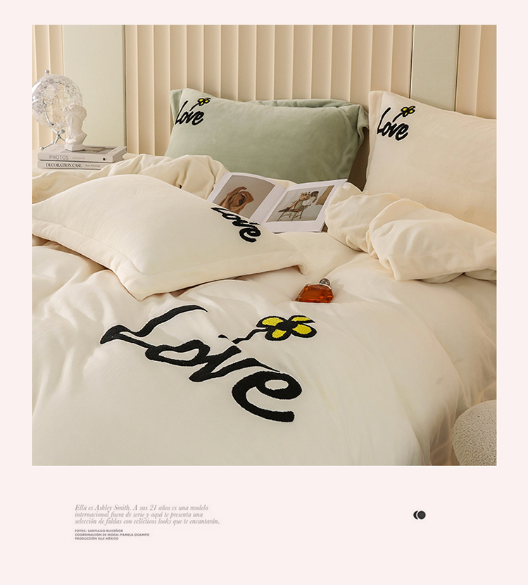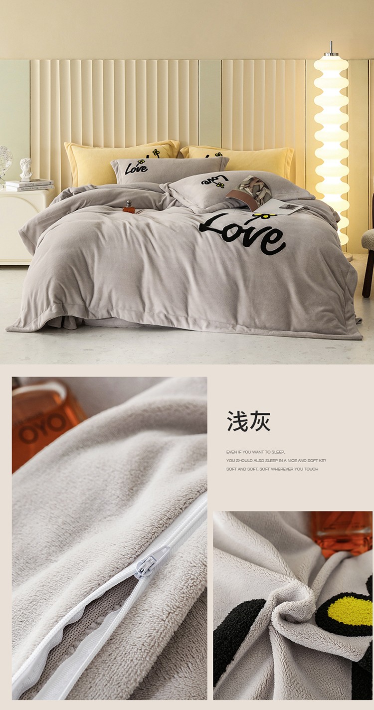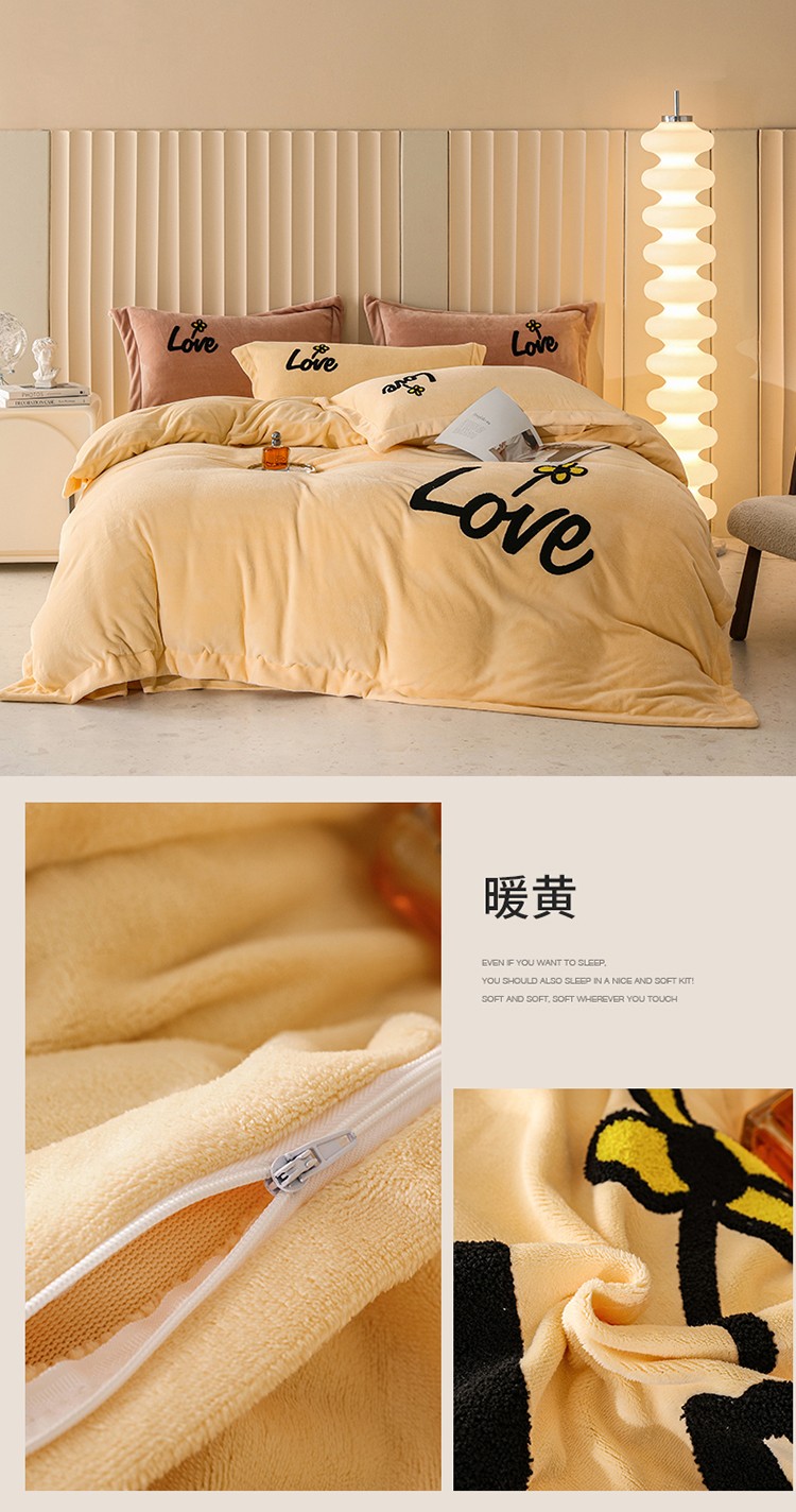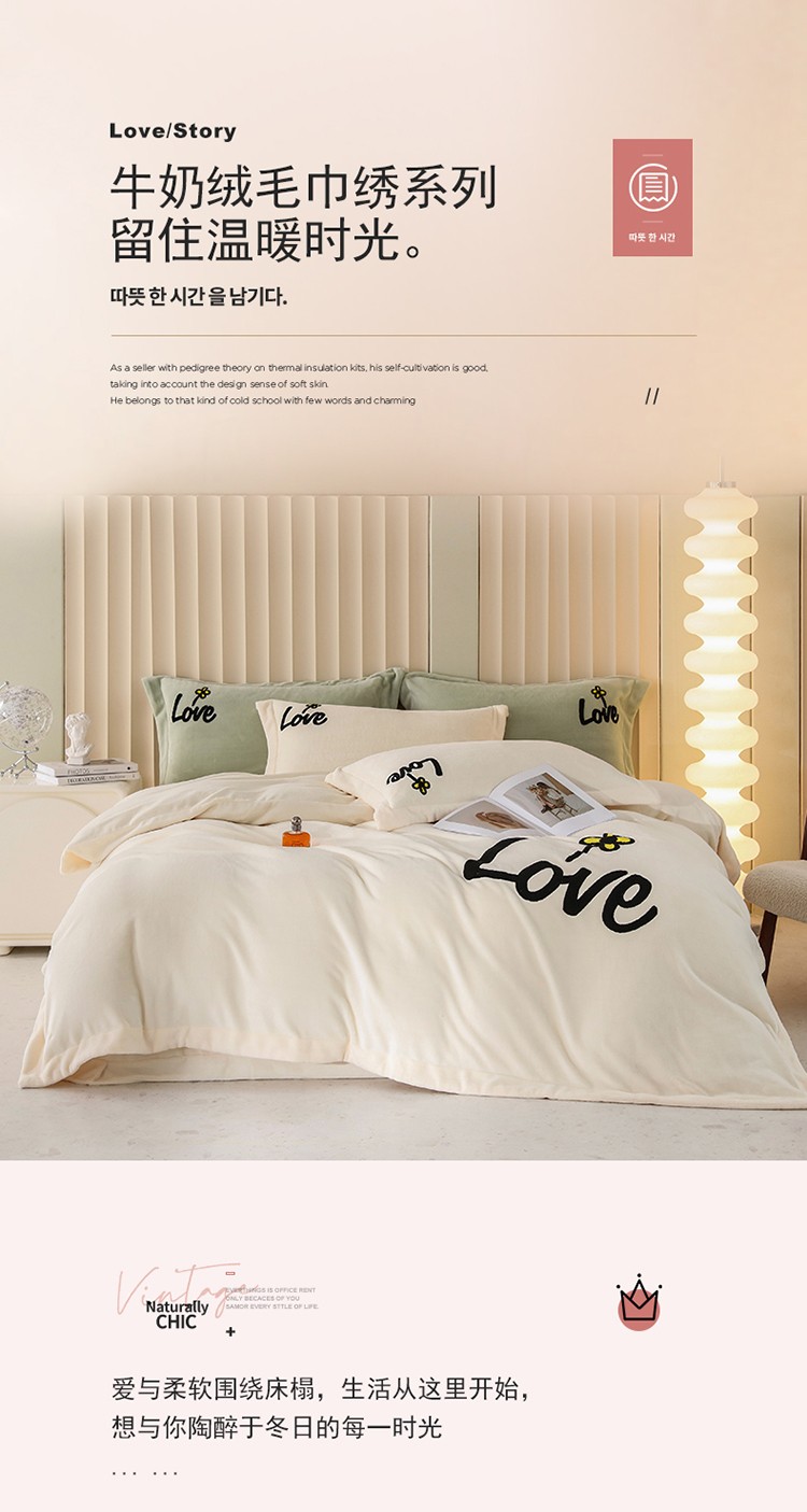 (总)名品优仓2022新款牛奶绒230克毛巾绣四件套LOVE