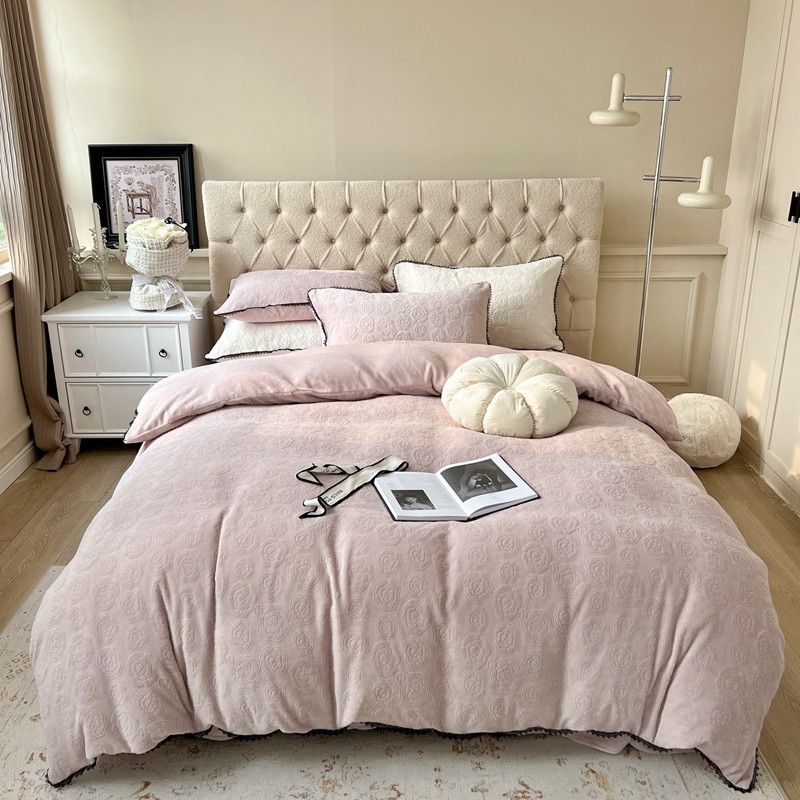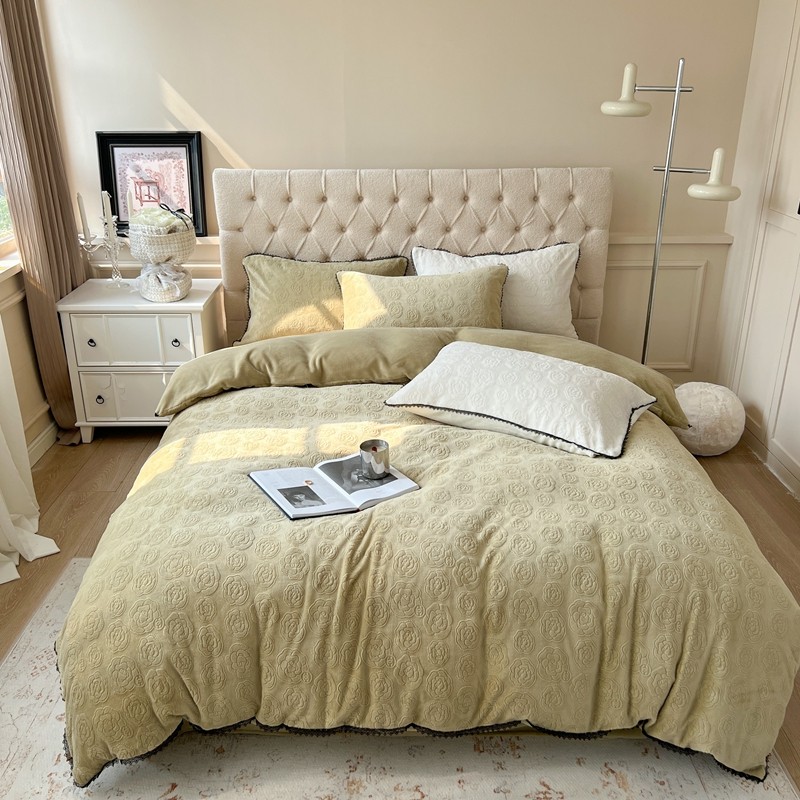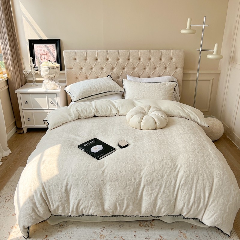 当前位置: 91家纺网 > 商品网购 > 床品套件 > 四件套 > 全棉普通四件套 > (总)柚子 2022新款雕花牛奶绒四件套-山茶花