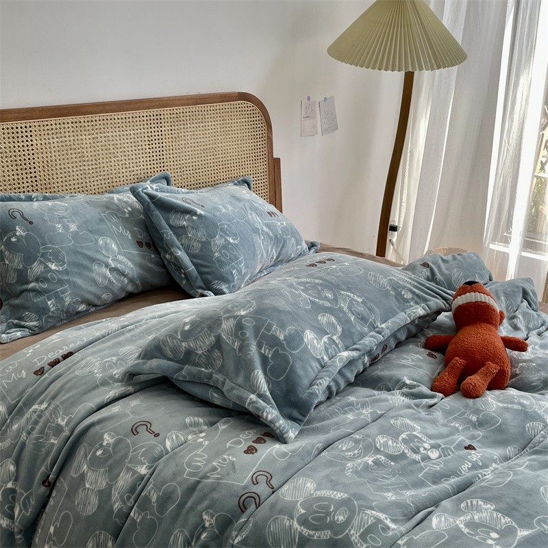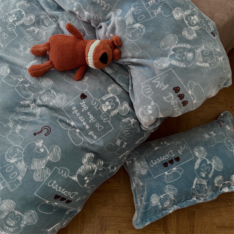 源启生活 新款230g全消光高克重牛奶绒四件套 米奇课堂