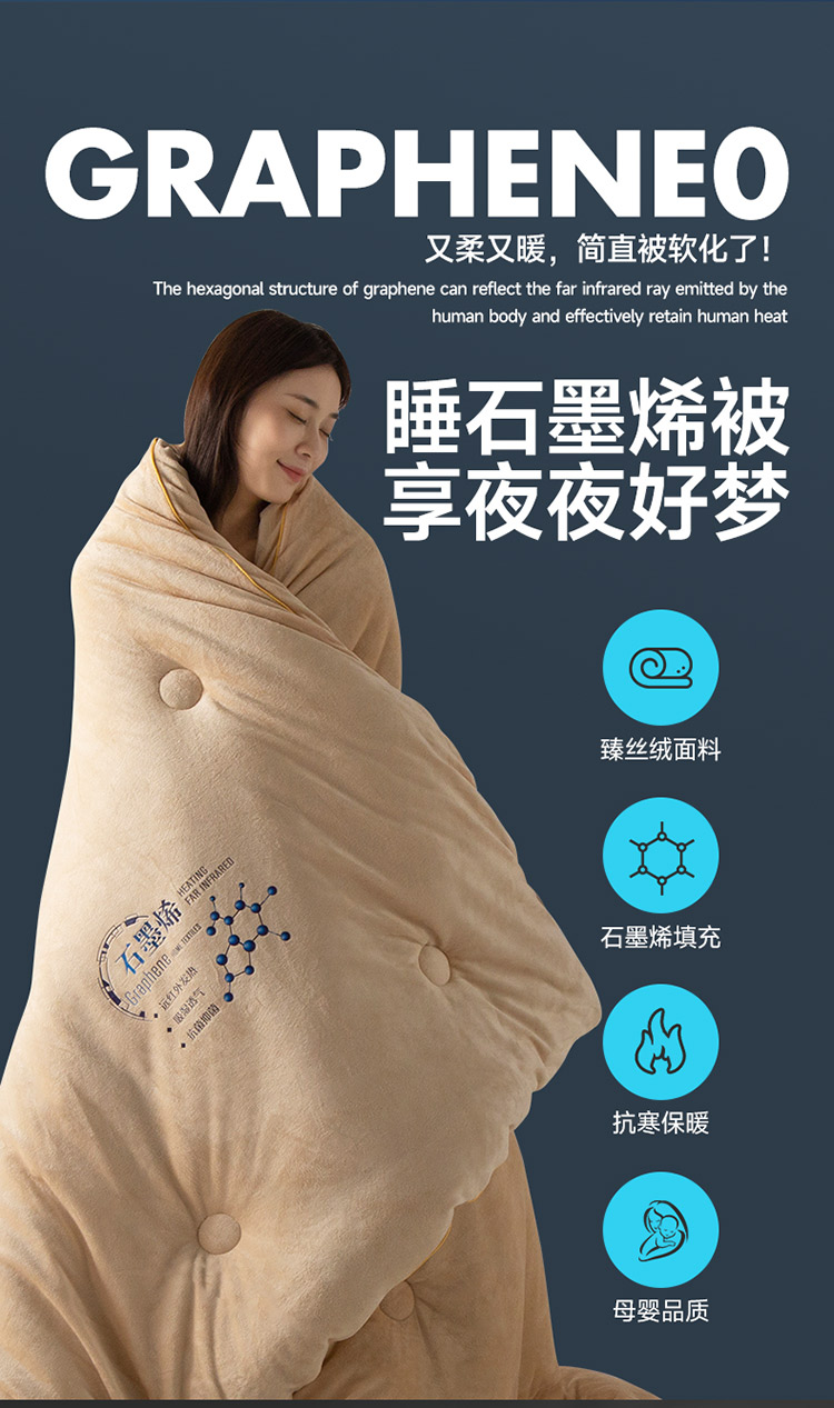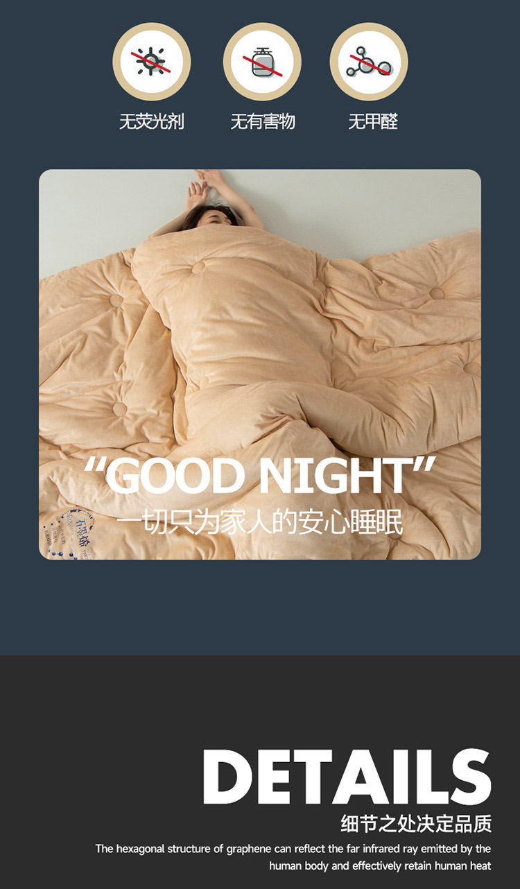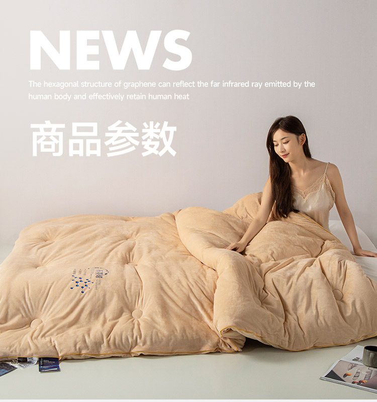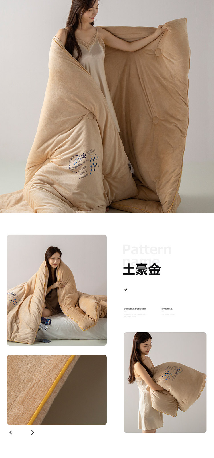 • 91家纺网 家纺一手货源 找家纺 被靠被 2023新款石墨烯科技发热被子系列 土豪金