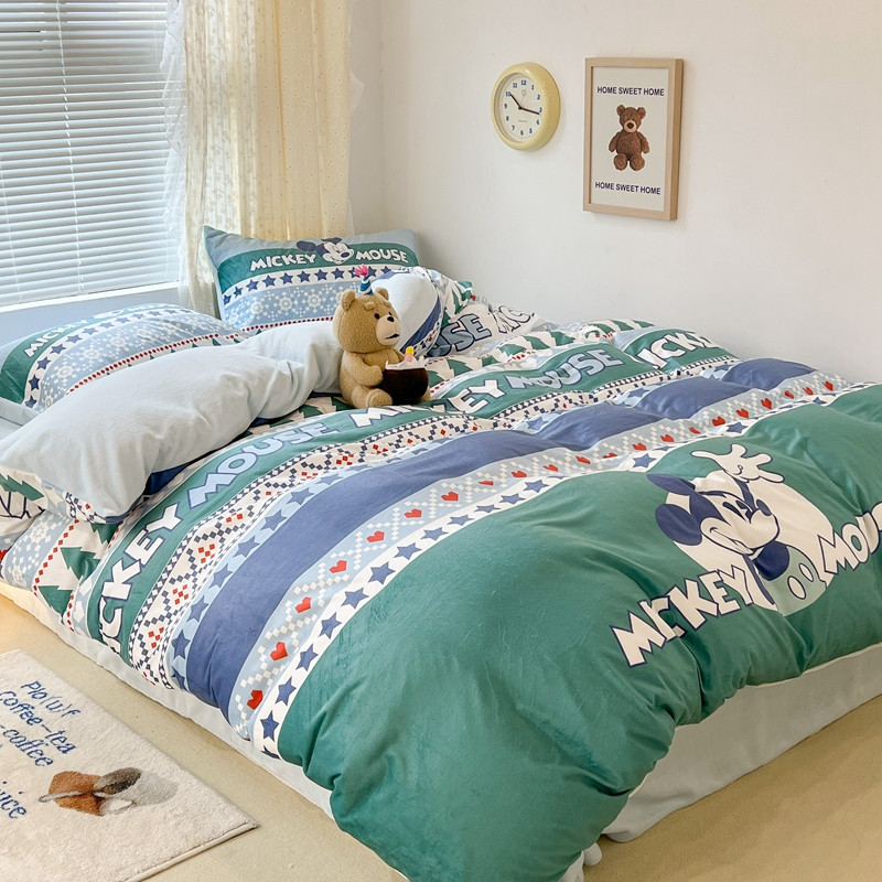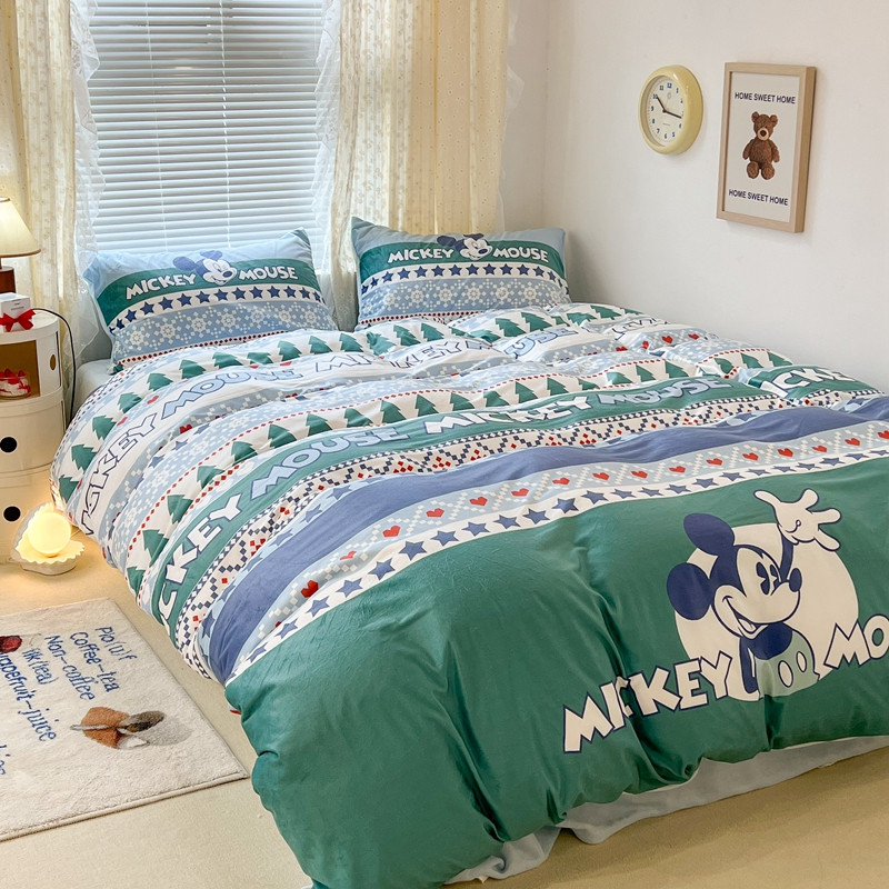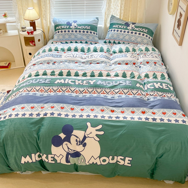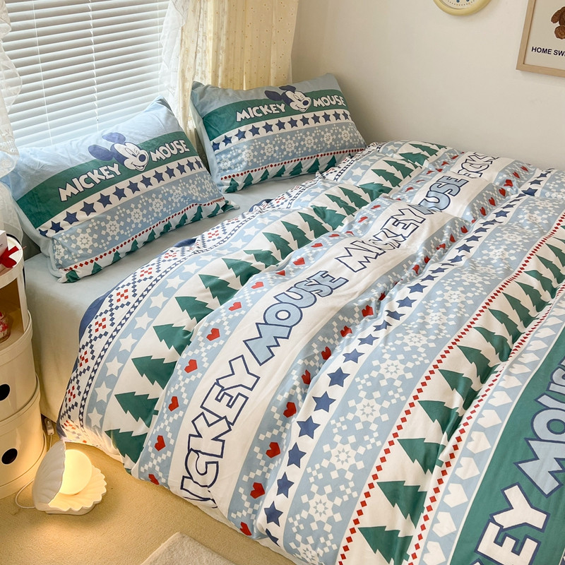 昔可 2022新款迪士尼大版宝宝牛奶绒四件套 圣诞快乐米奇