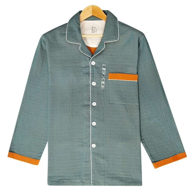 皇寝世家2023新嵌线纯棉双层纱长袖长裤家居服套装 813男-宝石蓝
