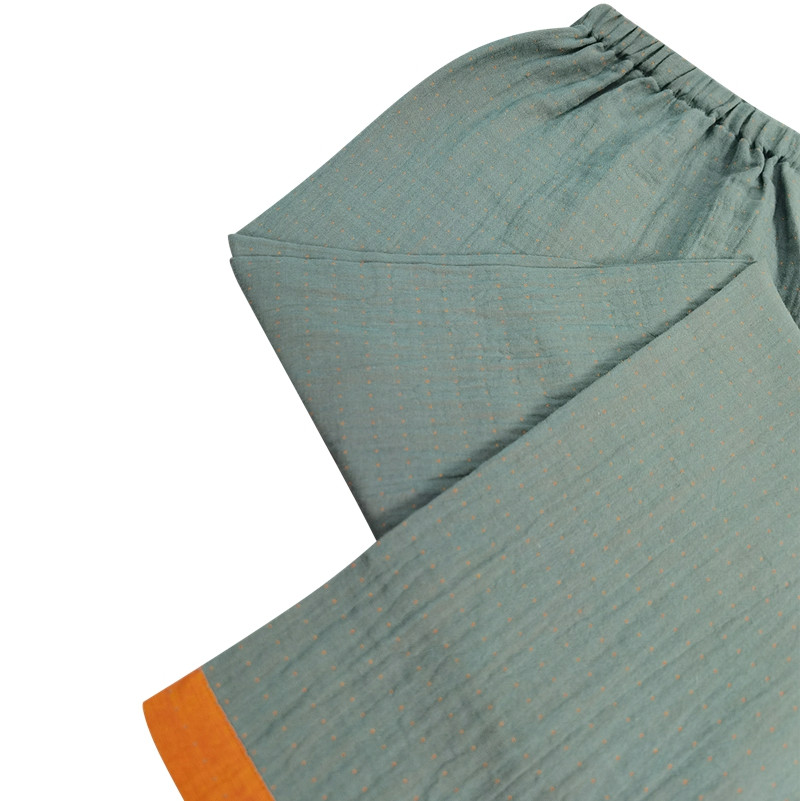 (总)皇寝世家 2023新款纯棉双层纱短袖长裤家居服套装,804男-灰细格,805女-粉细格,805女-黄细格,805女-绿细格