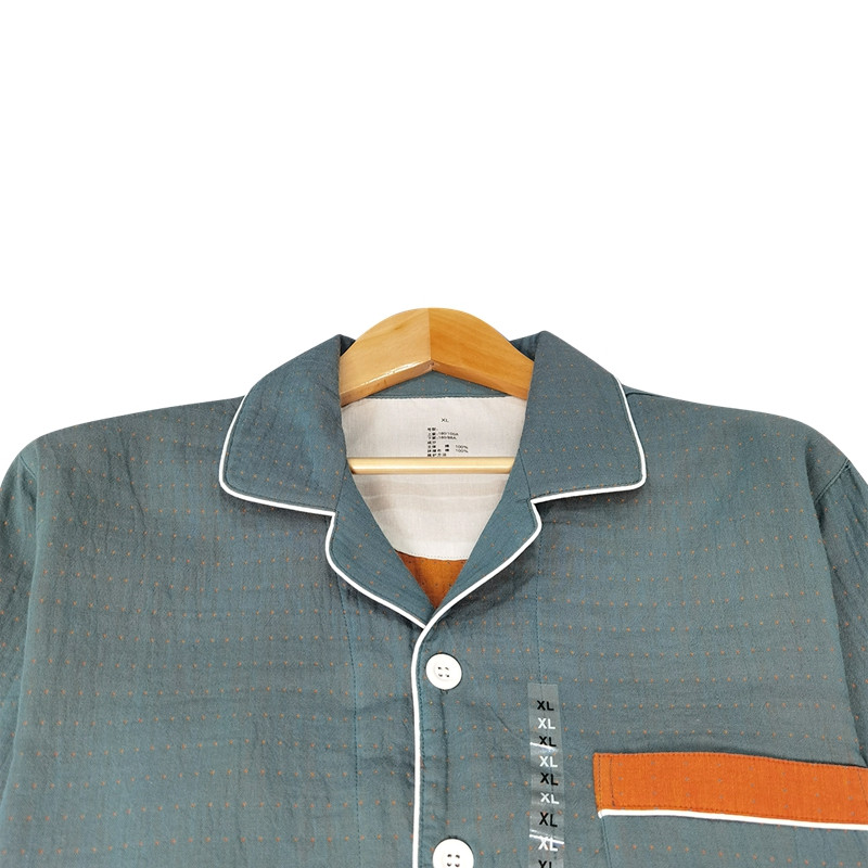 商品名称:皇寝世家2023新嵌线纯棉双层纱长袖长裤家居服套装 813男-宝石蓝