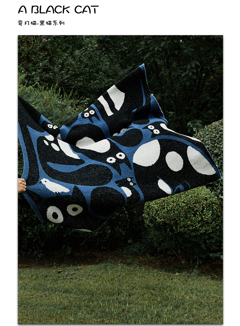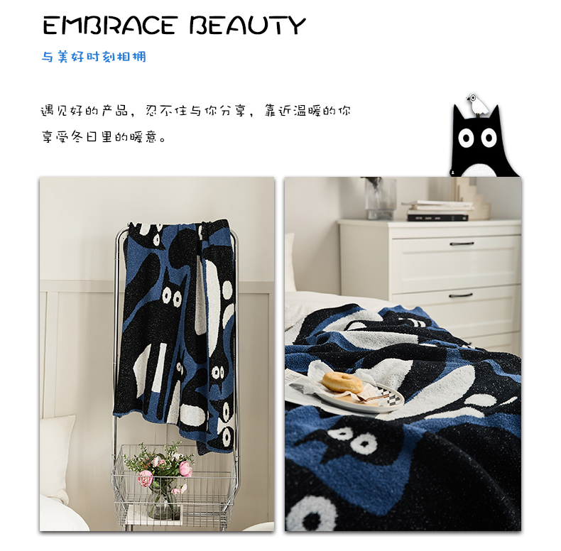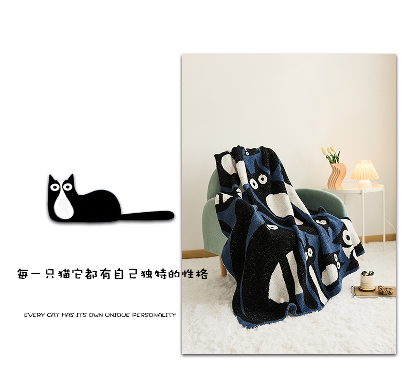 暖绵绵 新款半边绒毛毯-弯月猫系列 弯月猫-惊呆猫