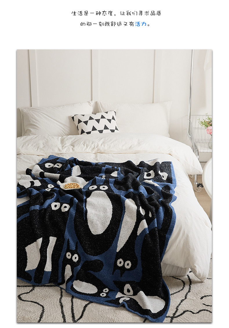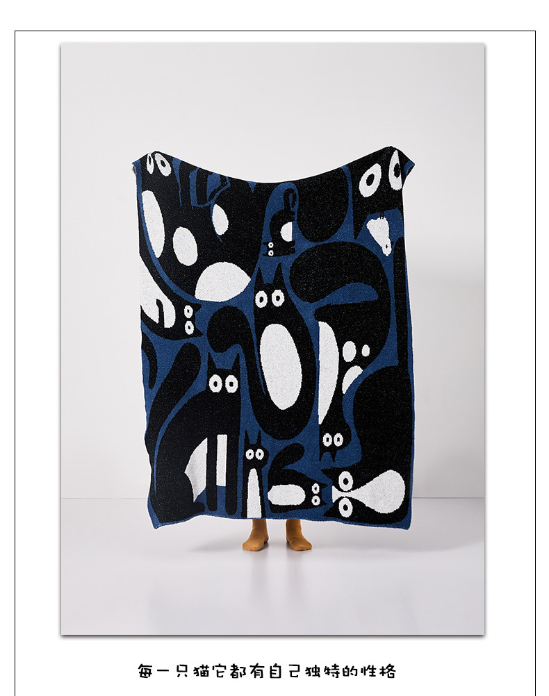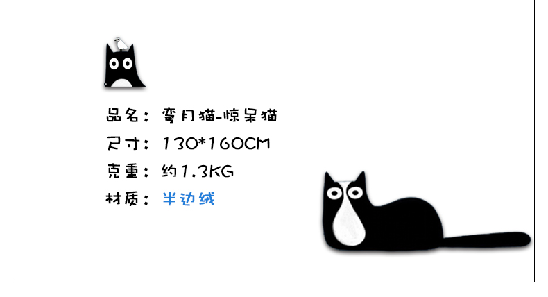 商品名称:暖绵绵 新款半边绒毛毯-弯月猫系列 弯月猫-惊呆猫