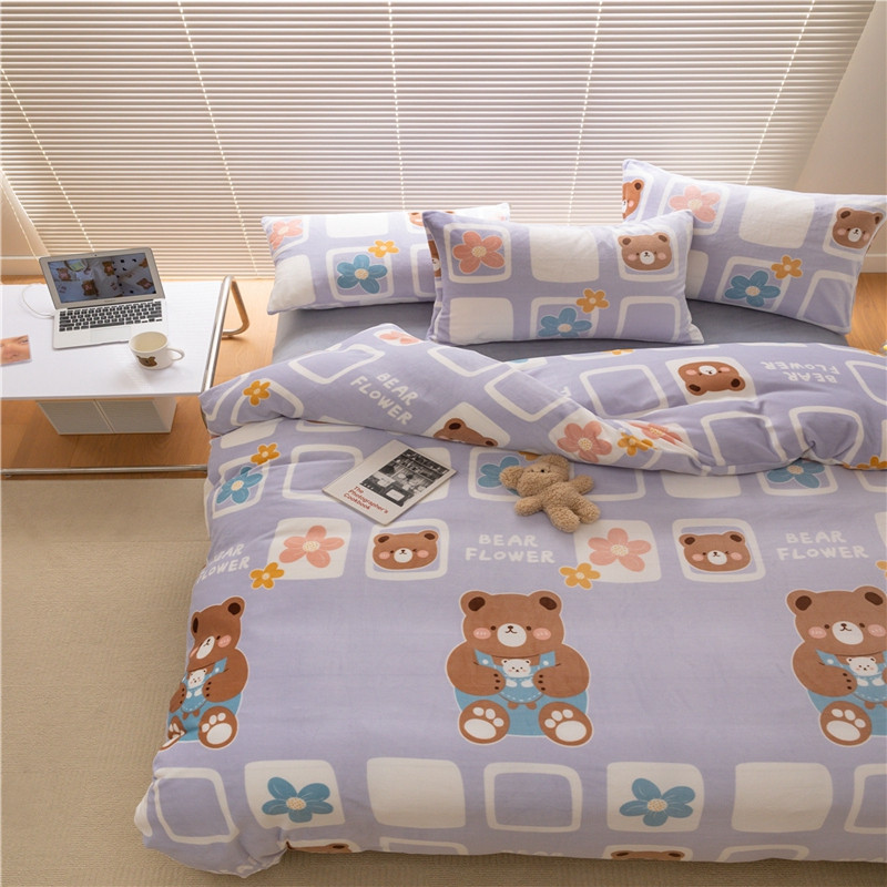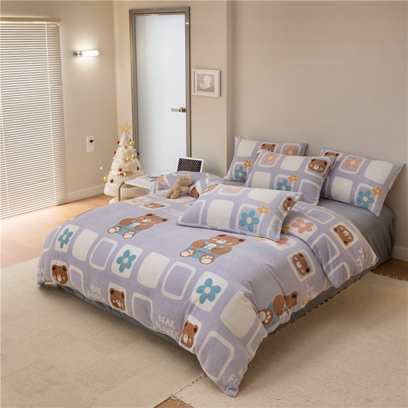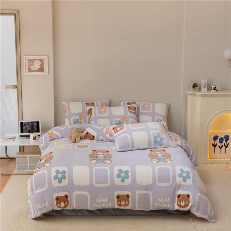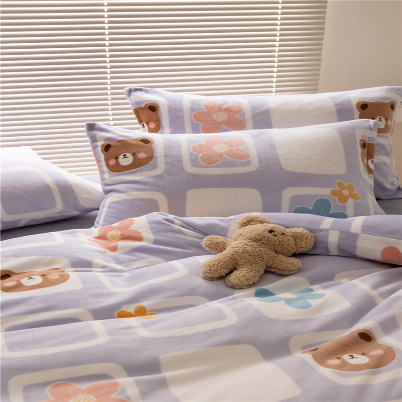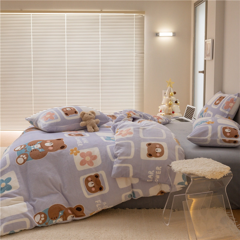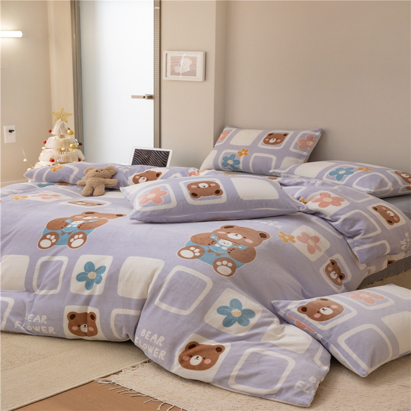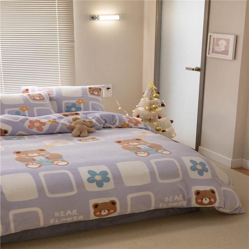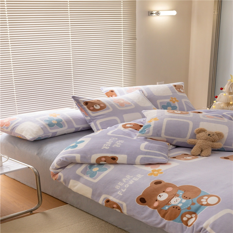 棉眠 2022新款卡通牛奶绒四件套 熊朵儿-紫
