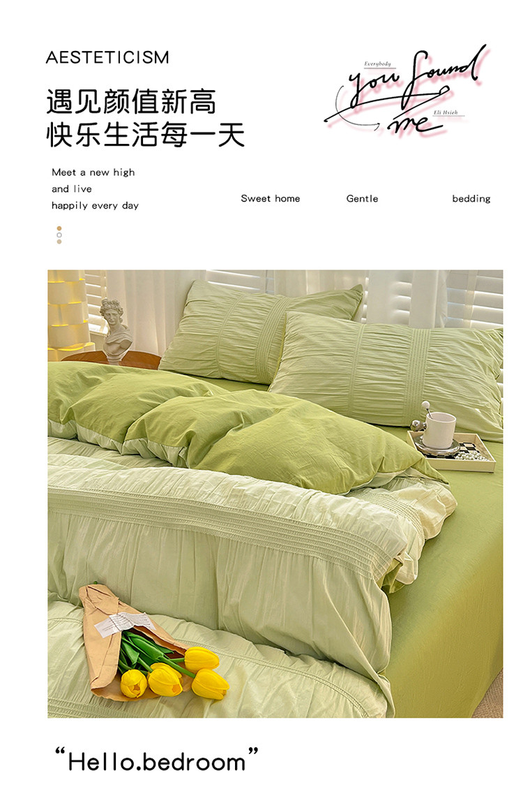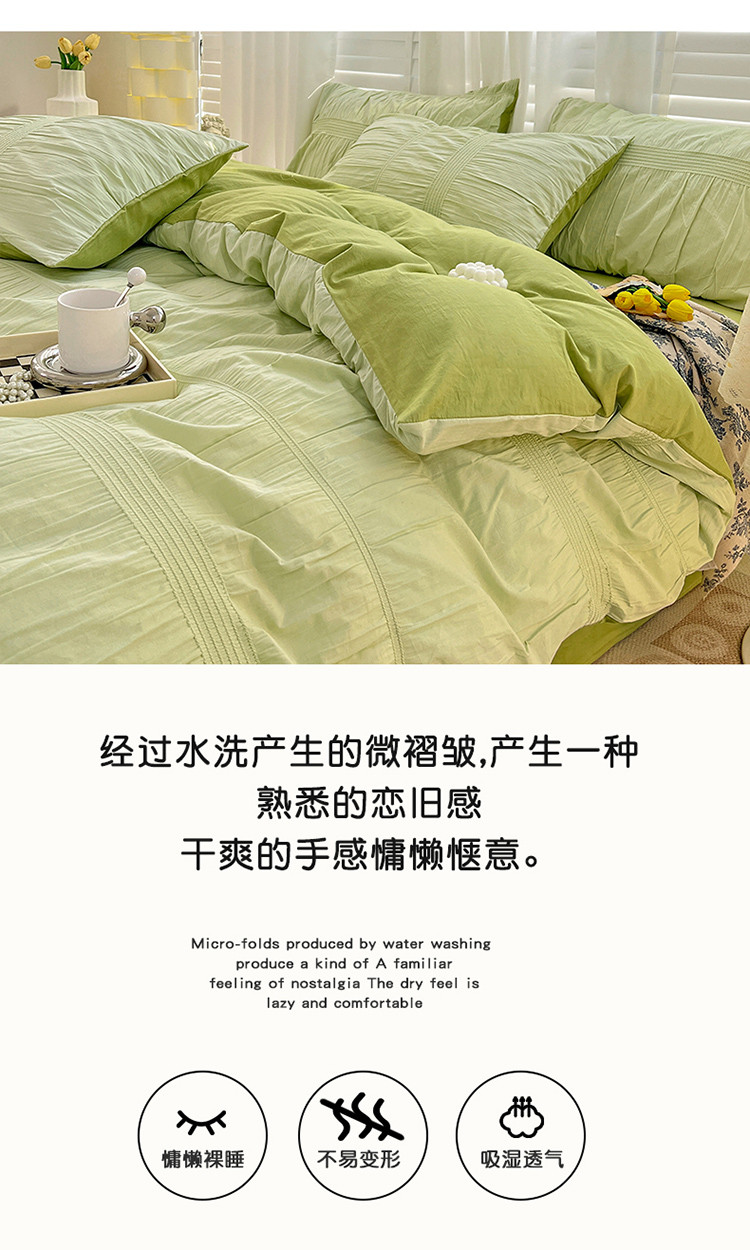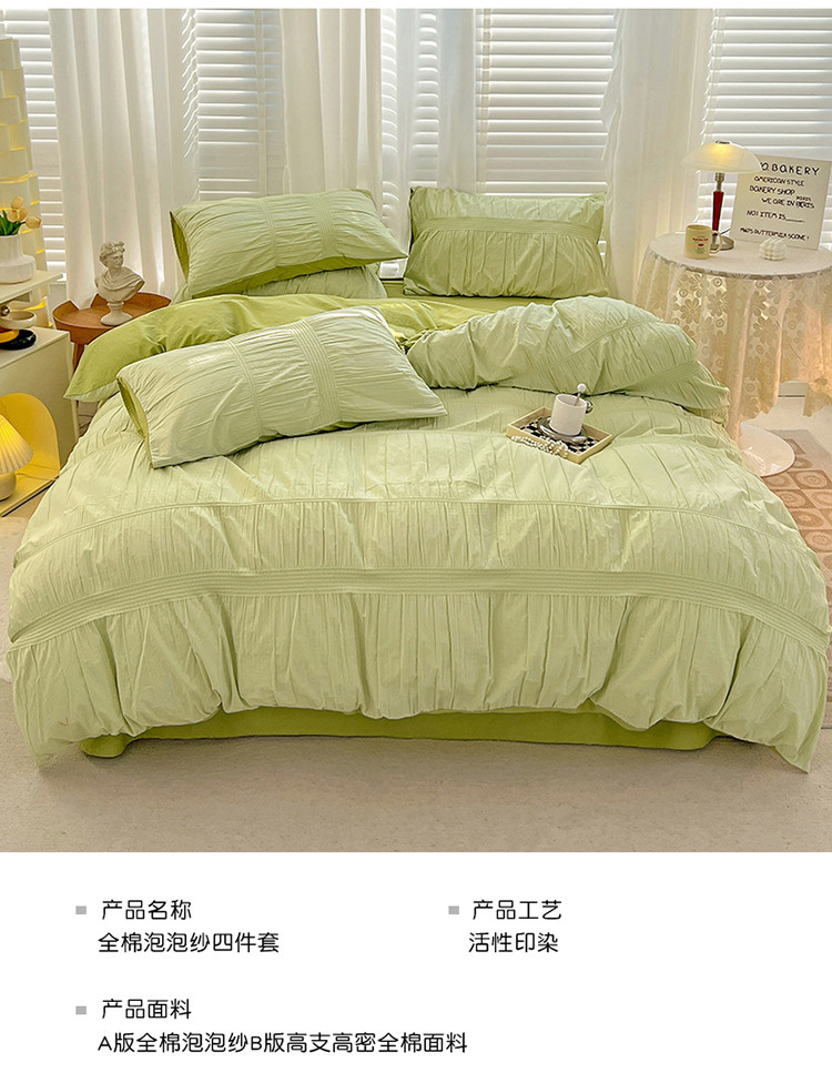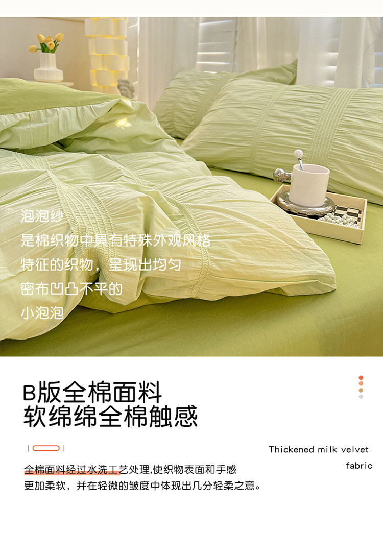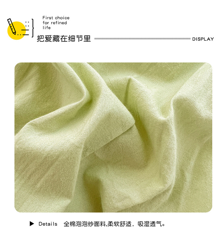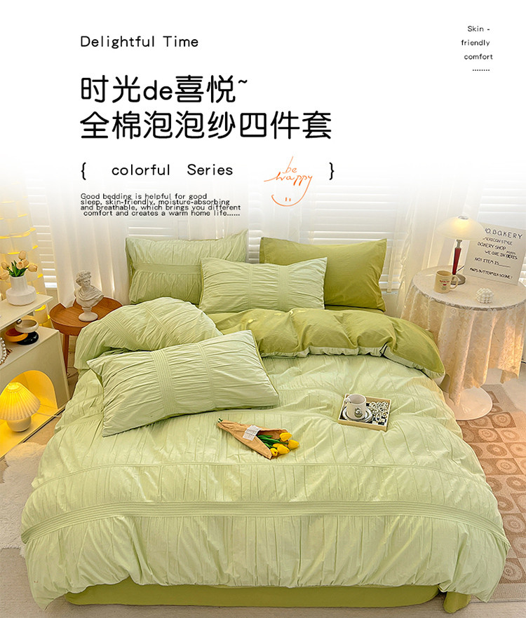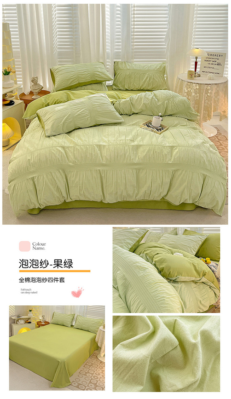 当前位置: 91家纺网 > 商品网购 > 床品套件 > 四件套 > 全棉普通四件套 > 娜娜 2022新款全棉泡泡纱四件套 泡泡纱-果绿