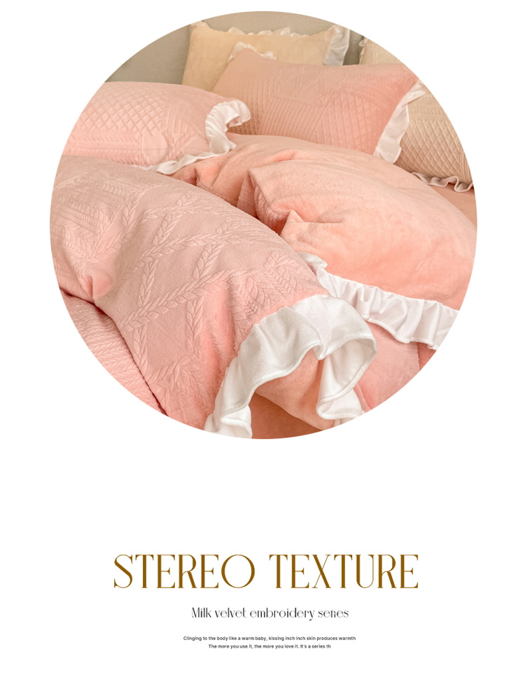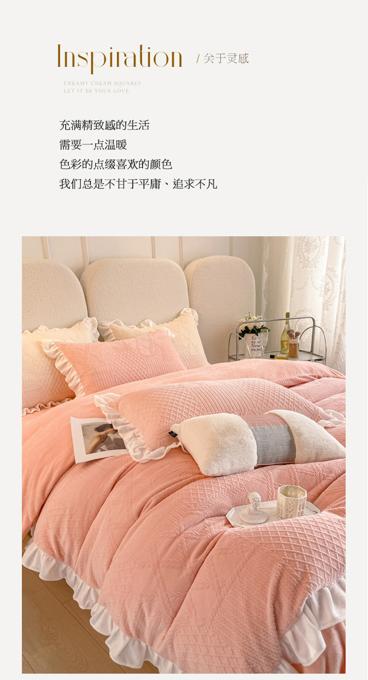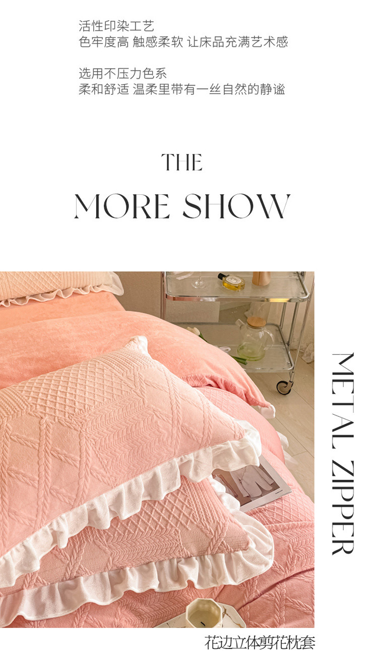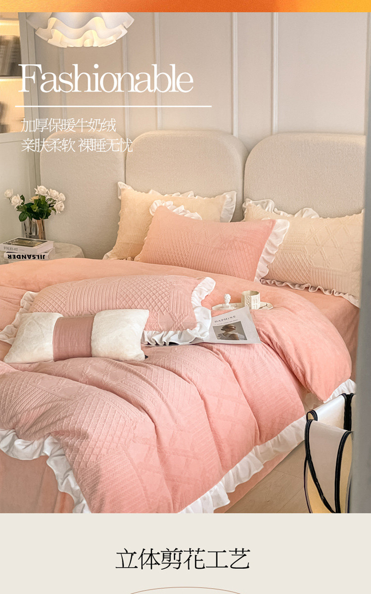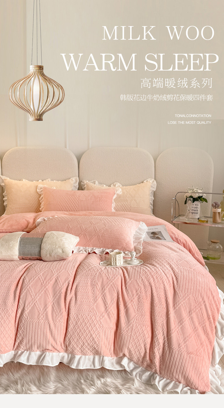 当前位置: 91家纺网 > 商品网购 > 床品套件 > 四件套 > 牛奶绒四件套 > 沐慕 2023新款泡芙暖绒花边立体剪花牛奶绒四件套 泡芙-粉黛
