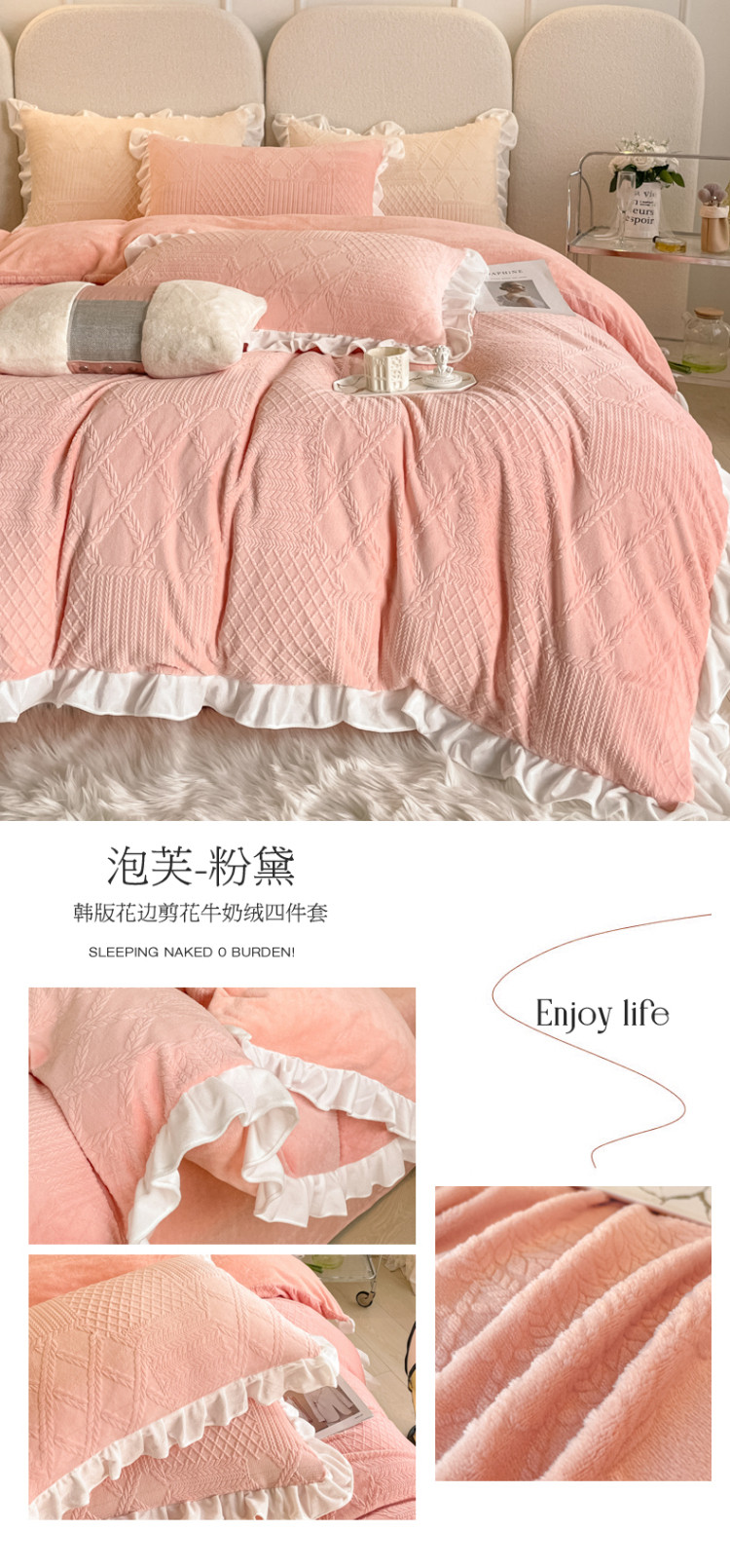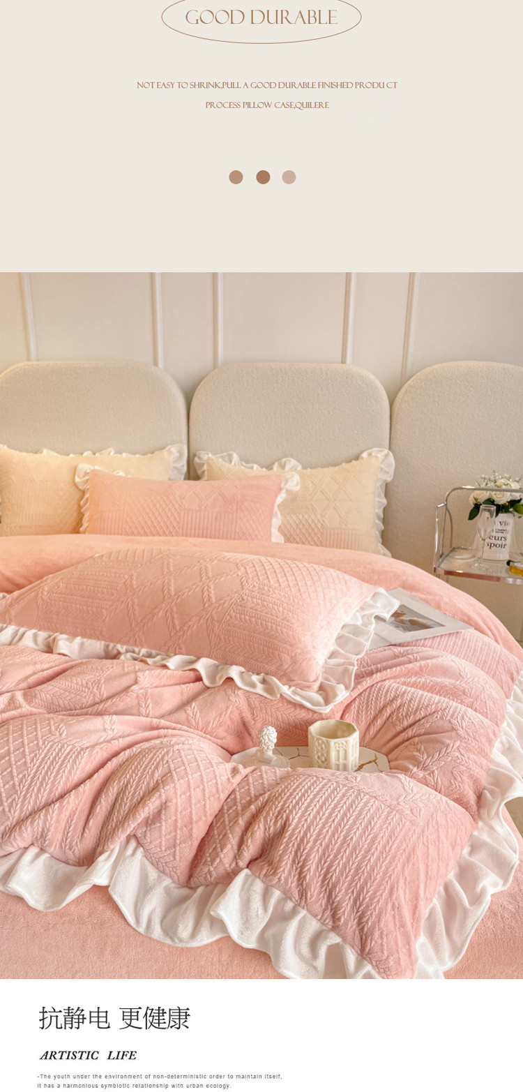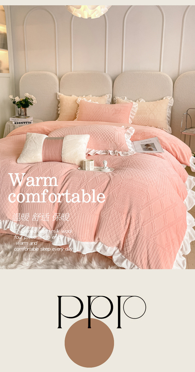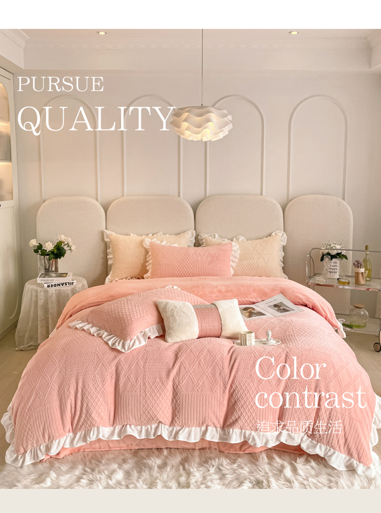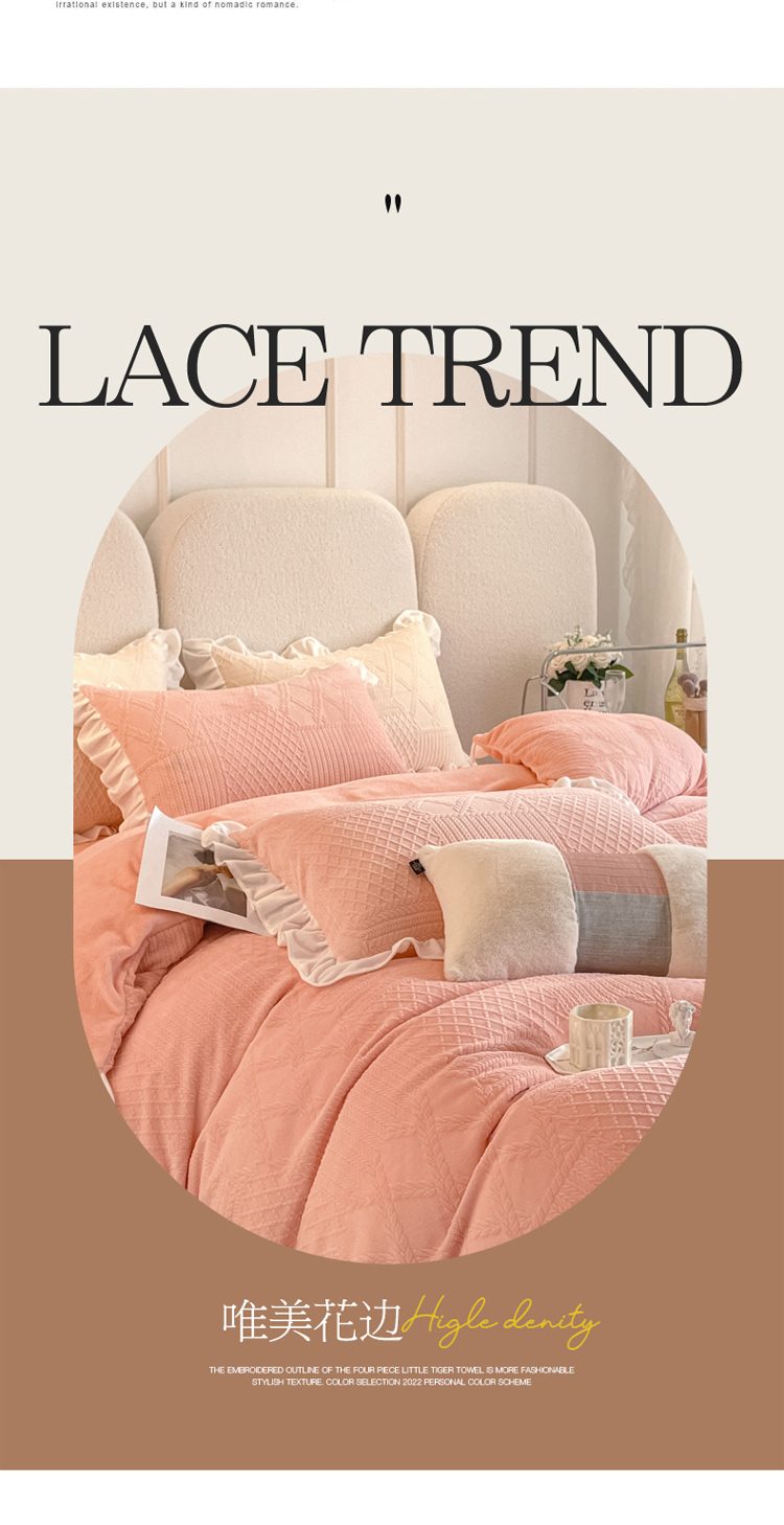 当前位置: 91家纺网 > 商品网购 > 床品套件 > 四件套 > 牛奶绒四件套 > 沐慕 2023新款泡芙暖绒花边立体剪花牛奶绒四件套 泡芙-粉黛
