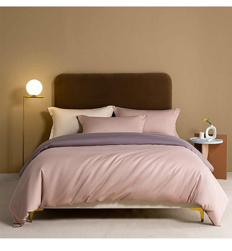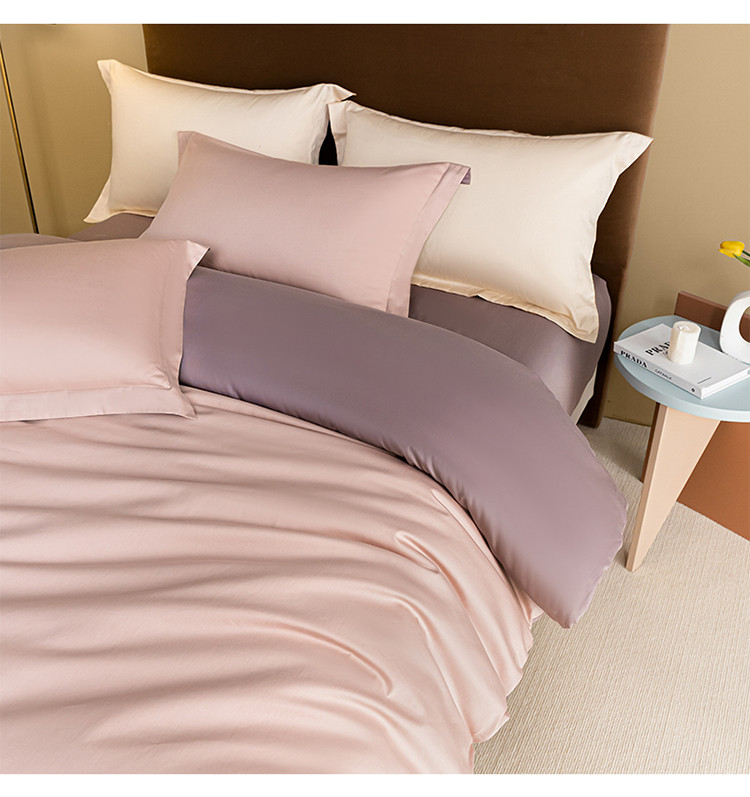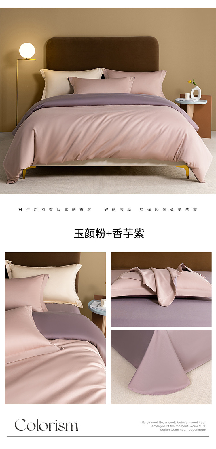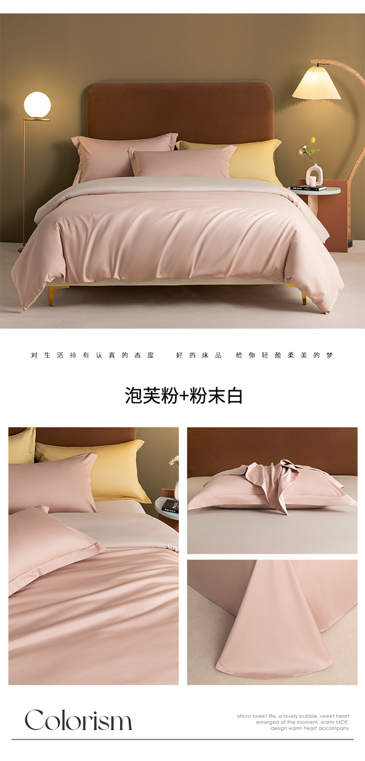 商品名称:秀色50支贡缎新疆长绒棉全棉纯棉酒店轻奢纯色被套床上四件套玉颜粉+典雅灰