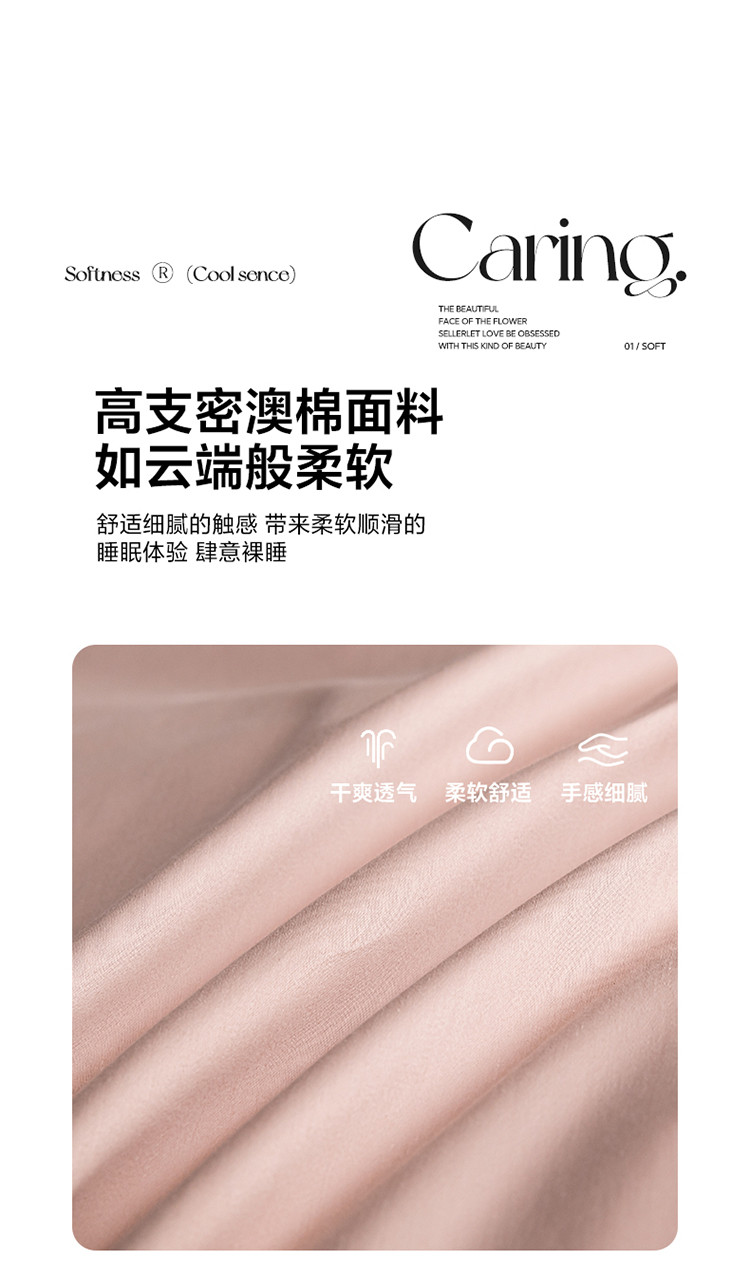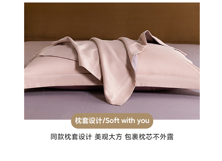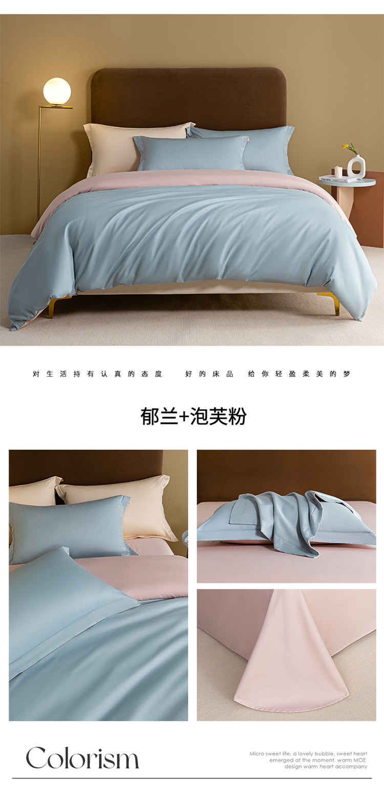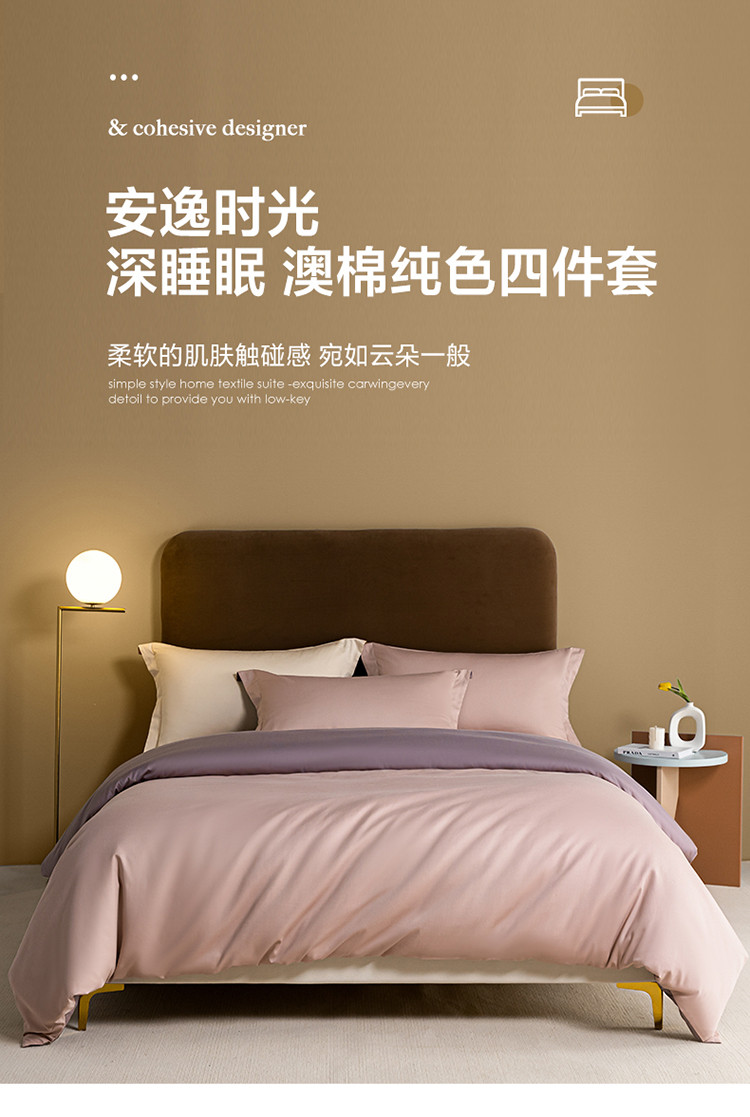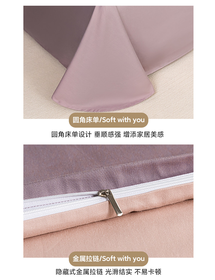 商品名称:秀色50支贡缎新疆长绒棉全棉纯棉酒店轻奢纯色被套床上四件套玉颜粉+典雅灰