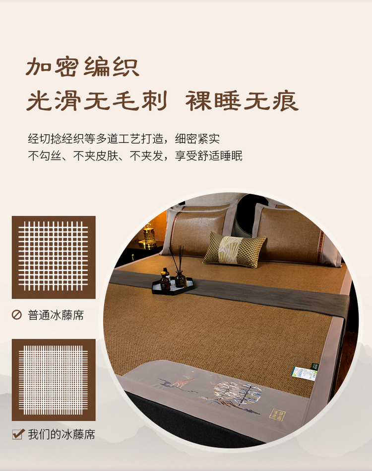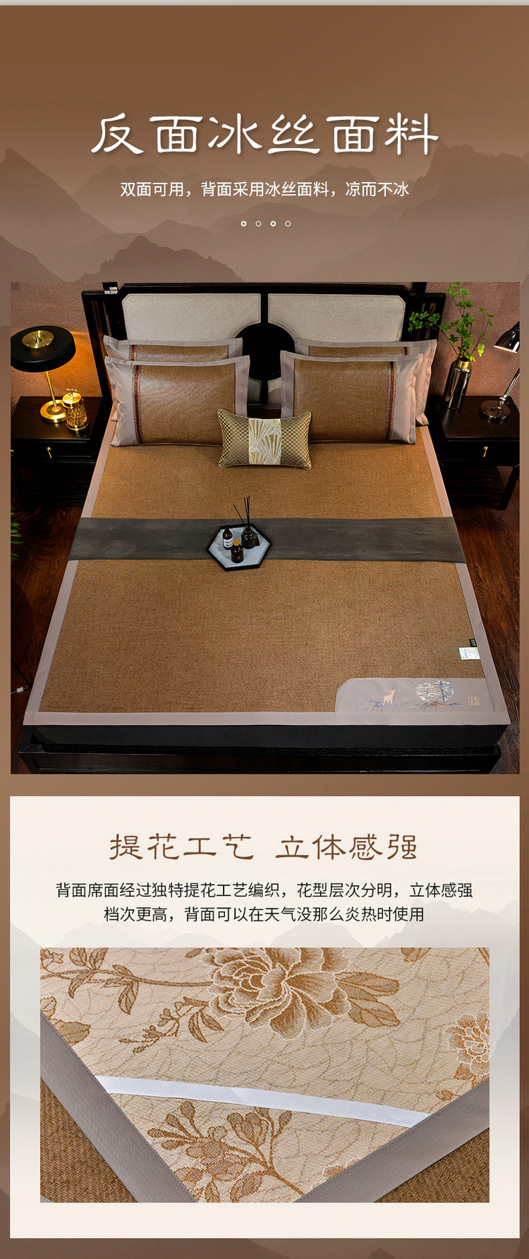 2023新款夏日冰点-冰藤双面席凉席藤席竹席冰丝席乳胶席,咖色,蓝色,绿色,香槟