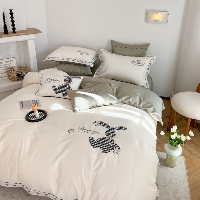 (总)柚子YOUTH 2025新款全棉双层纱贴布绣四件套,棒球熊猫,贝雷帽,冰淇淋小熊,格子玩偶,碎花小兔,小黑猫