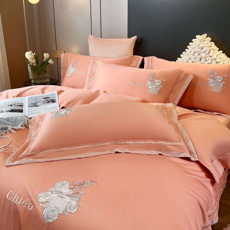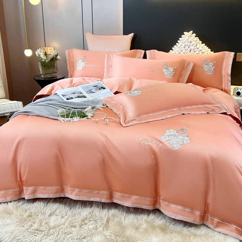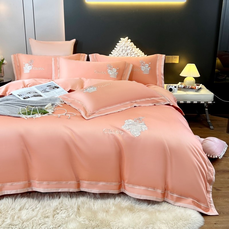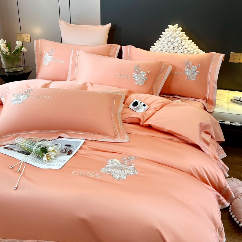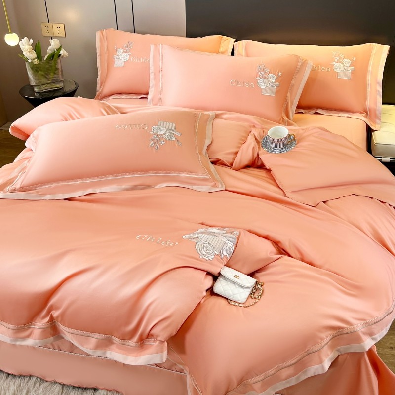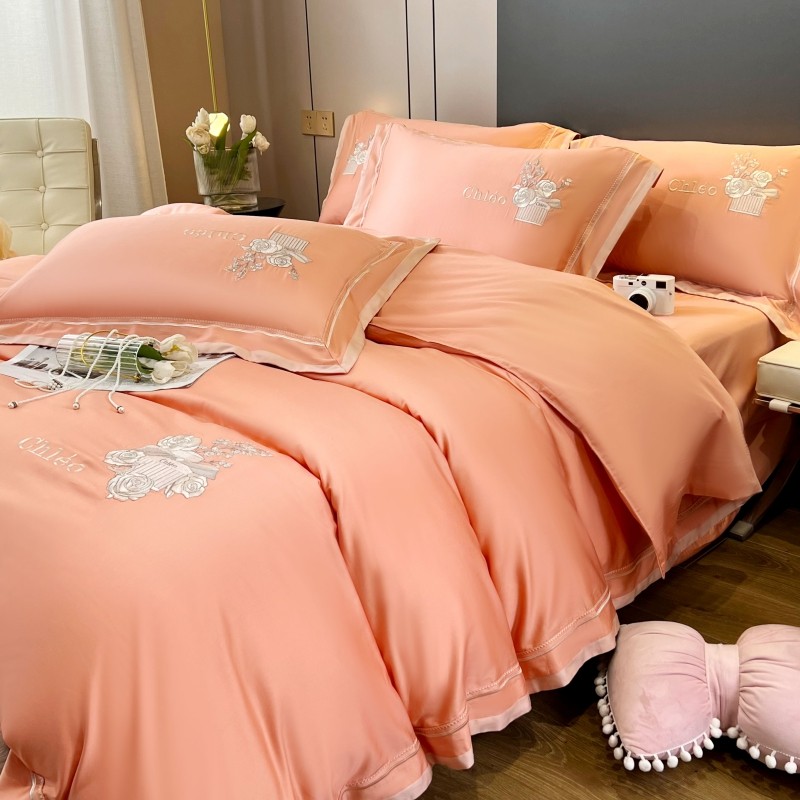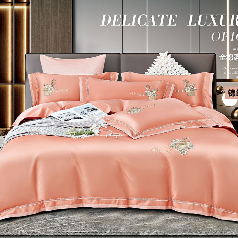 星尚家纺 2023新款100支长绒棉绣花四件套-锦湘 锦湘-香妃橘