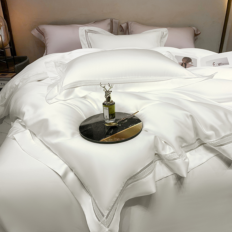 当前位置: 91家纺网 > 商品网购 > 床品套件 > 四件套 > 莱赛尔四件套 > 淼铭家纺 2025新款奥地利进口兰精天丝镂空花边四件套-织梦系列 织梦-白色
