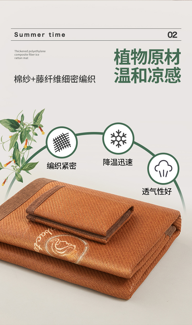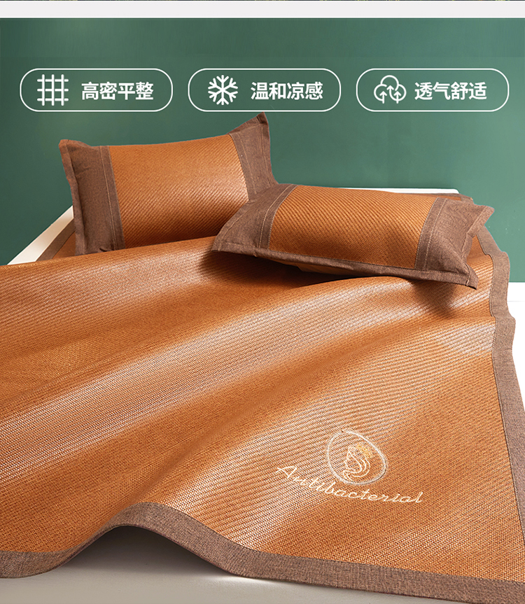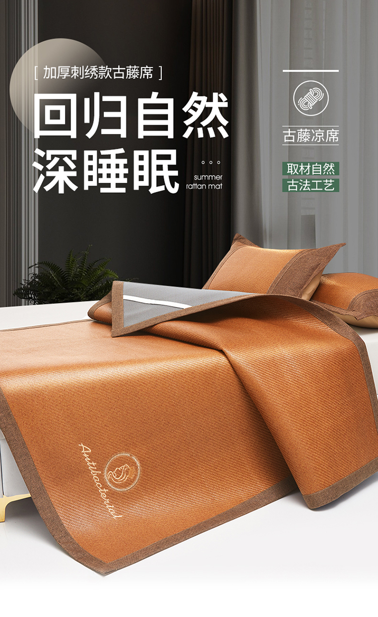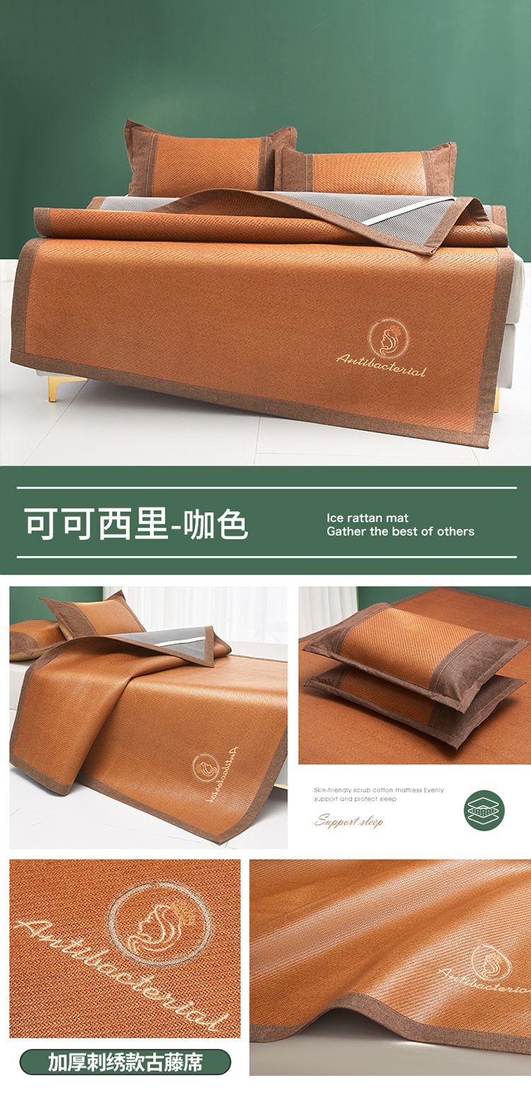 伊被源 2023新款加厚刺绣古藤席三件套-可可西里 可可西里-咖色