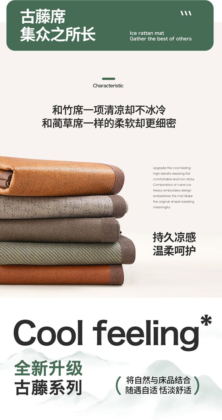 (总)伊被源 2023新款凉感冰藤刺绣软席-冷酷,深邃灰,伽罗色,古绿色,咖啡色