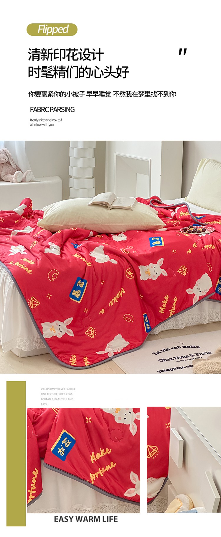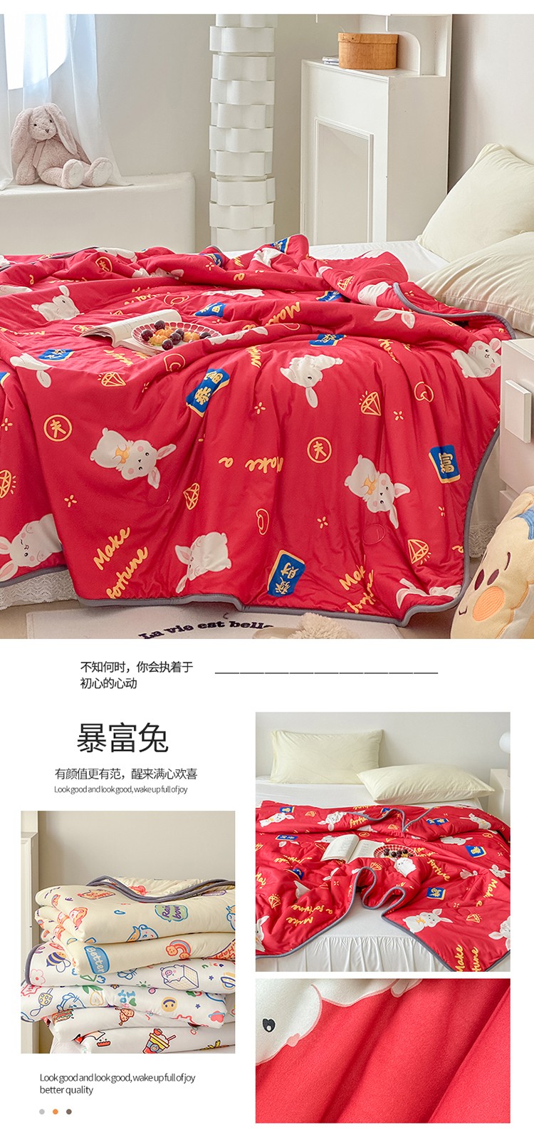 商品名称:灰鲸 2025新款 A类针织棉夏被 暴富兔
