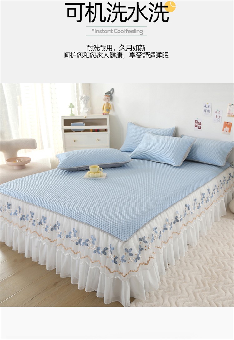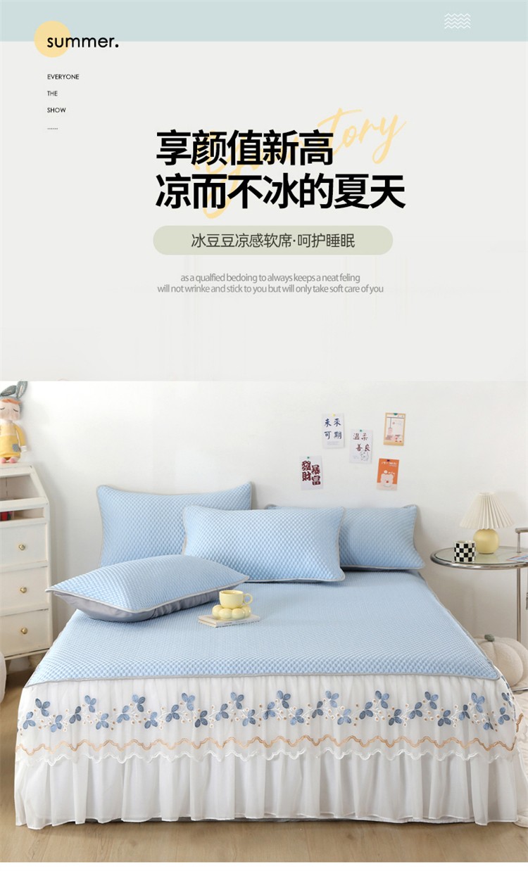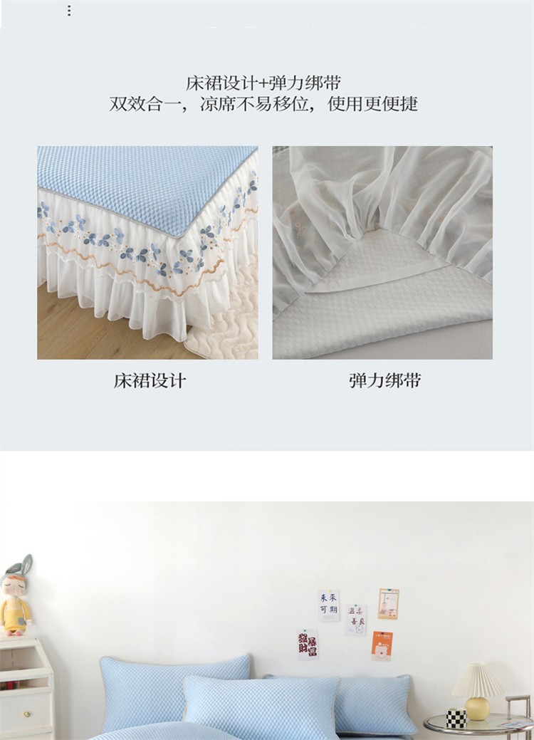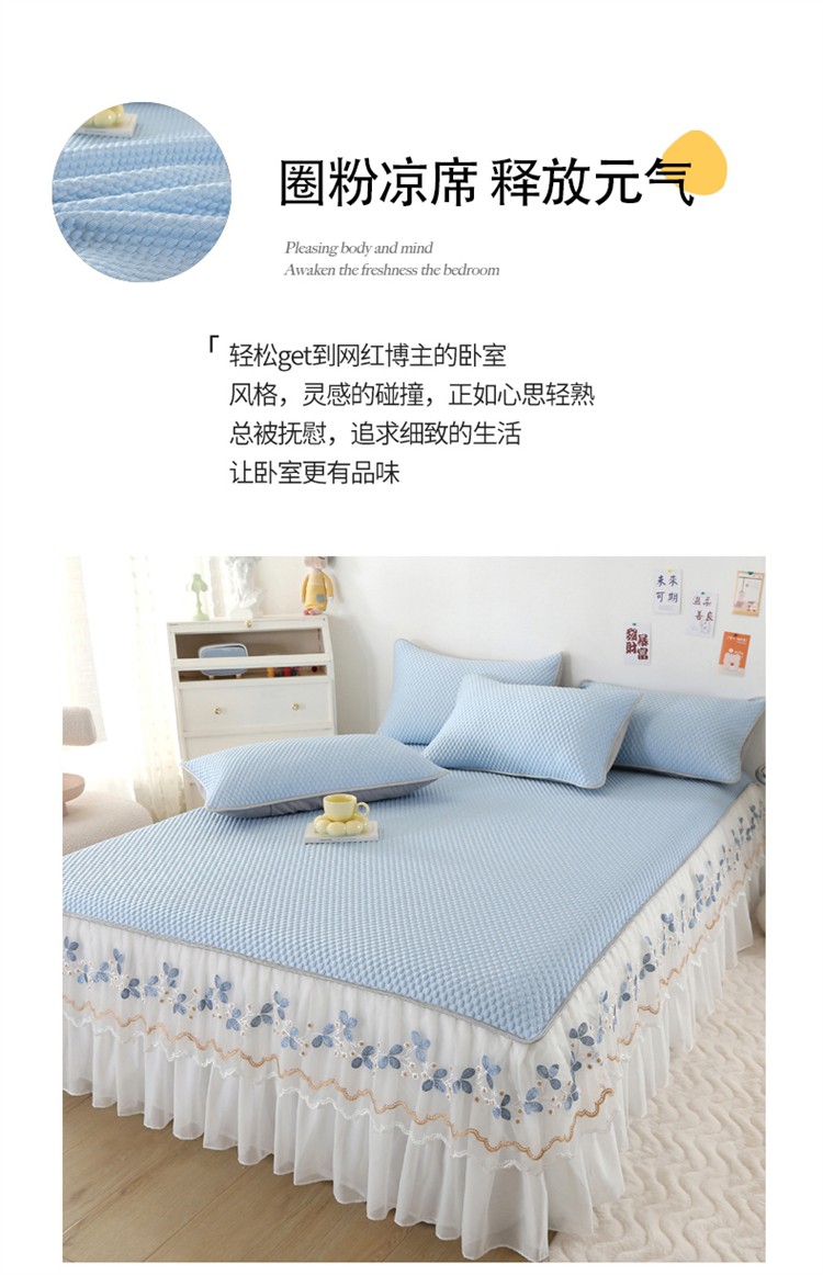 (总)能好家纺 2025新款双层刺绣花边冰豆豆席华夫格pe凉感席凉席,豆沙,灰,咖,蓝,绿