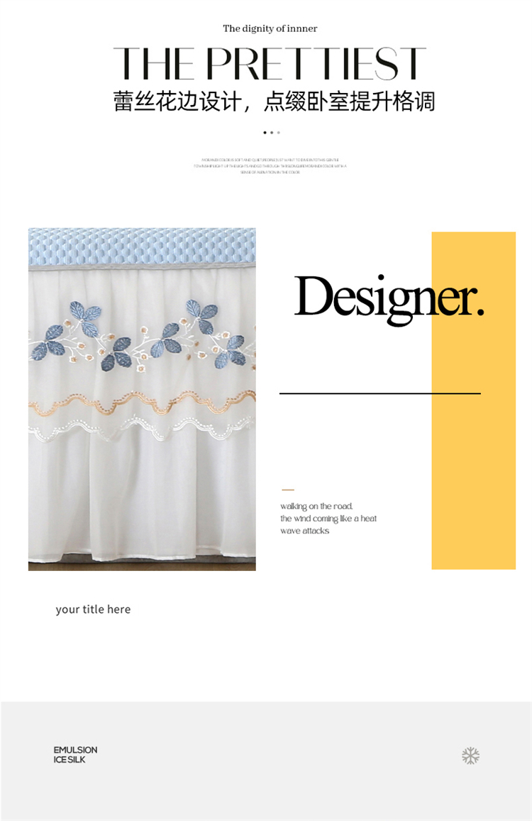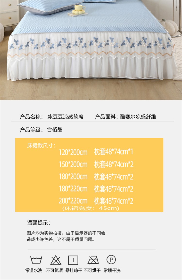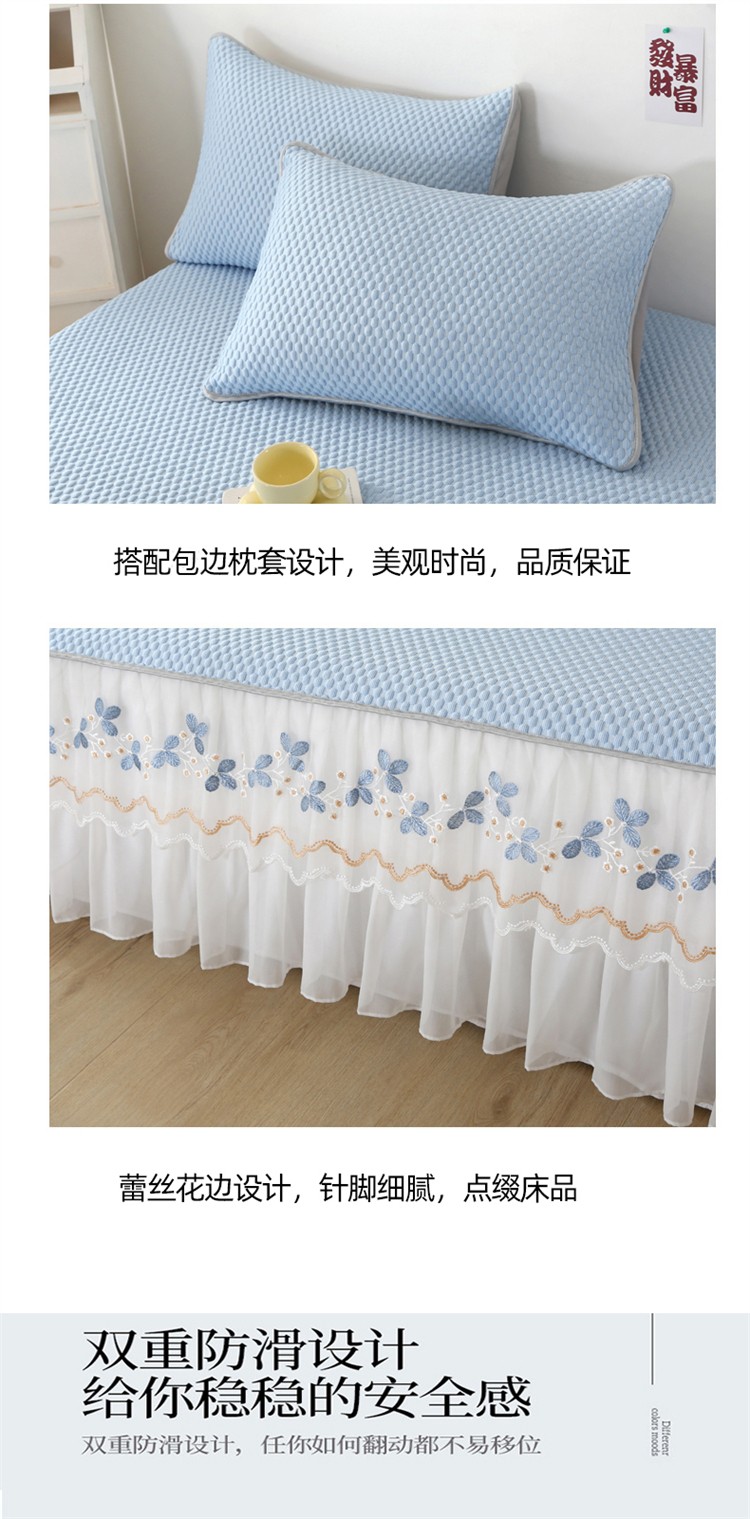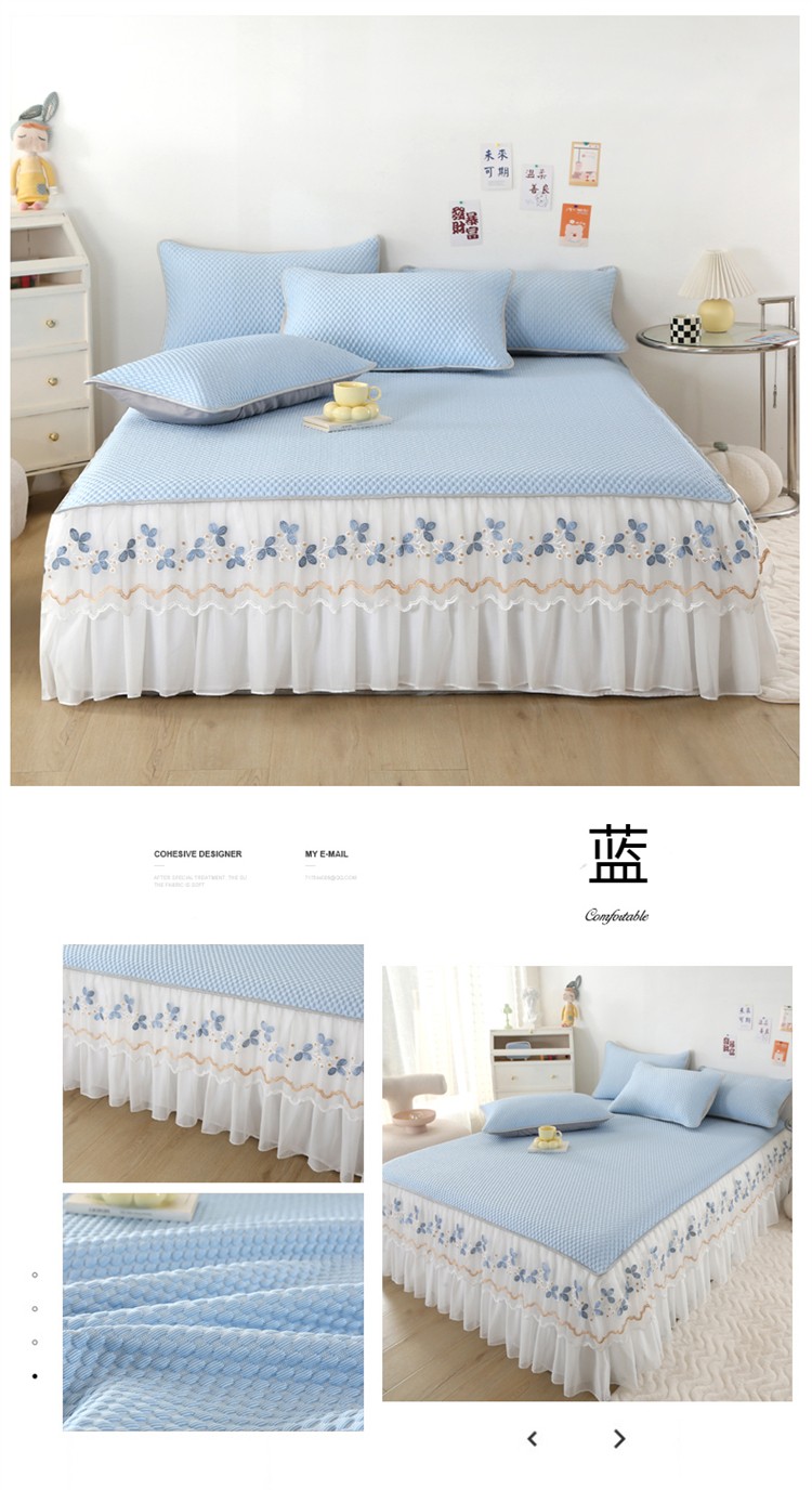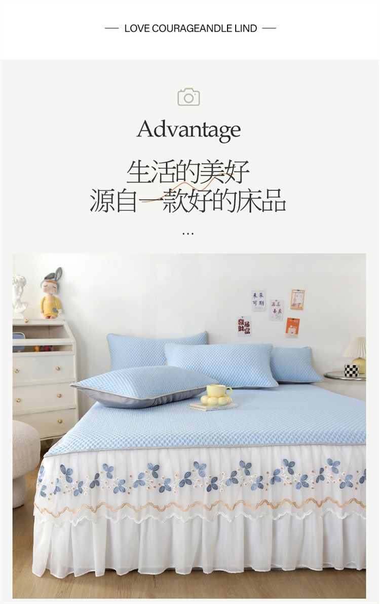 商品名称:能好家纺 2024新款600克全PE材质3D冰豆豆绣花床裙款 绣花 蓝