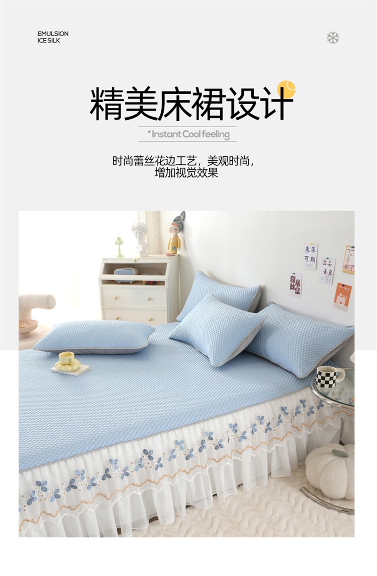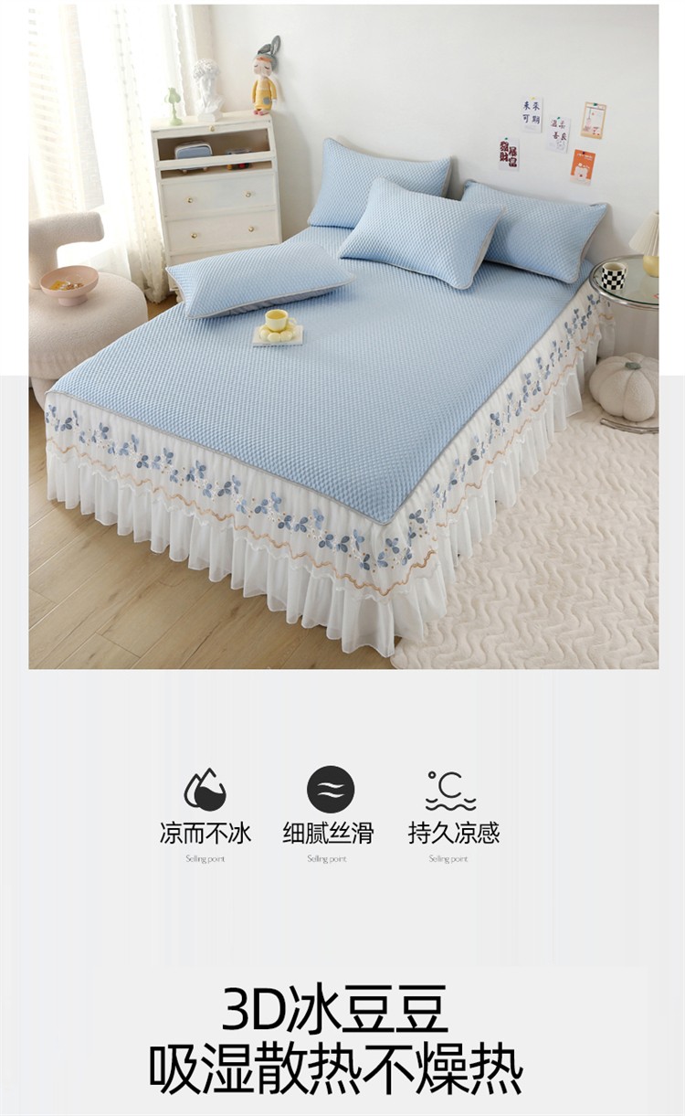 能好家纺 2024新款600克全PE材质3D冰豆豆绣花床裙款 绣花 蓝