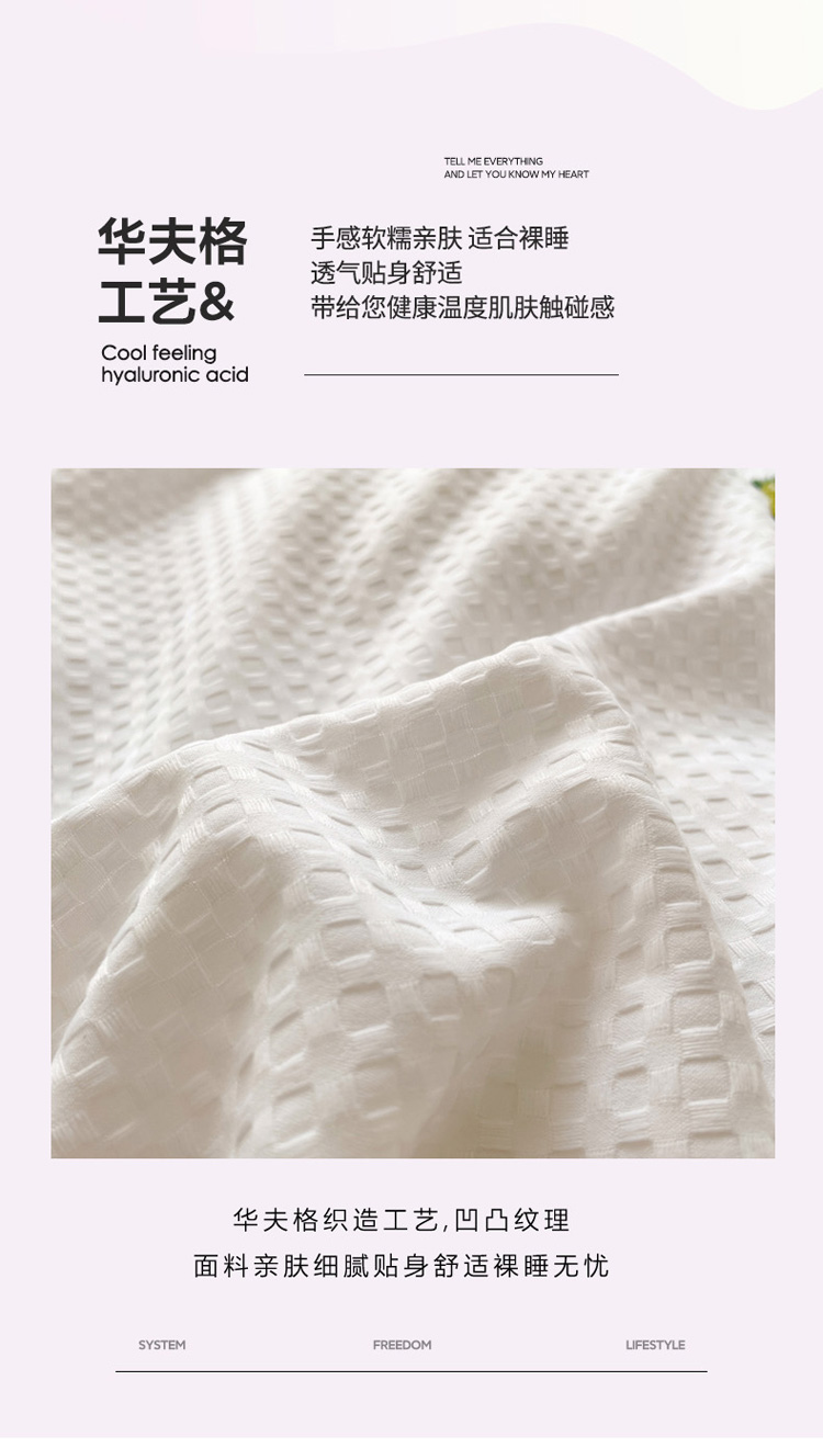 (总)慕澄家纺 2022新款华夫格简约款泡泡四件套,湖水绿,魅惑紫,奶白色,奶黄色,浅豆沙,情调灰,天空蓝,樱花粉