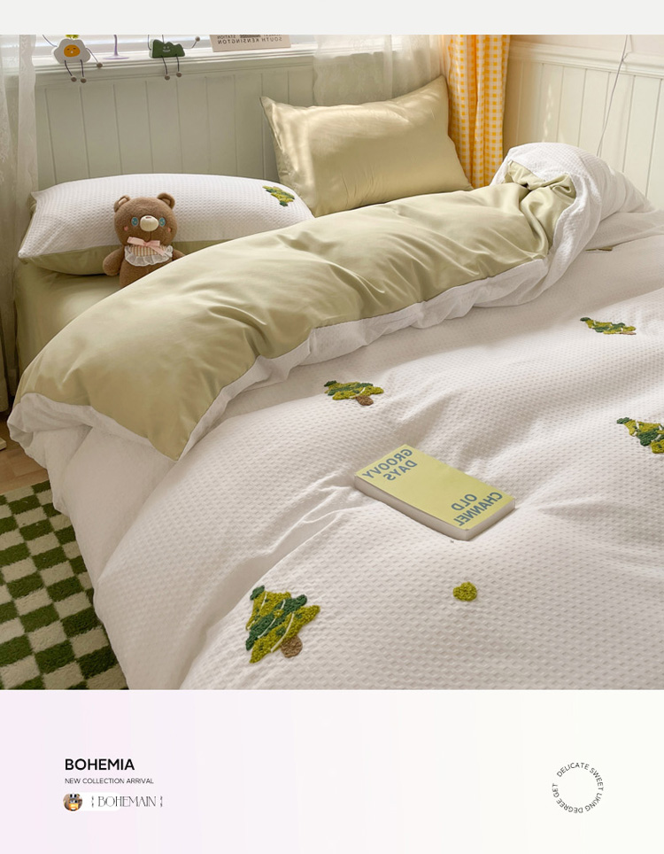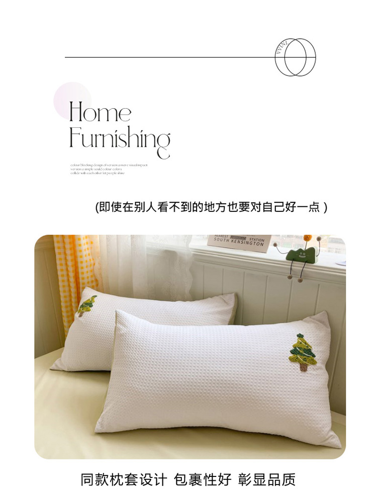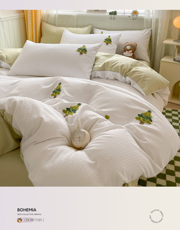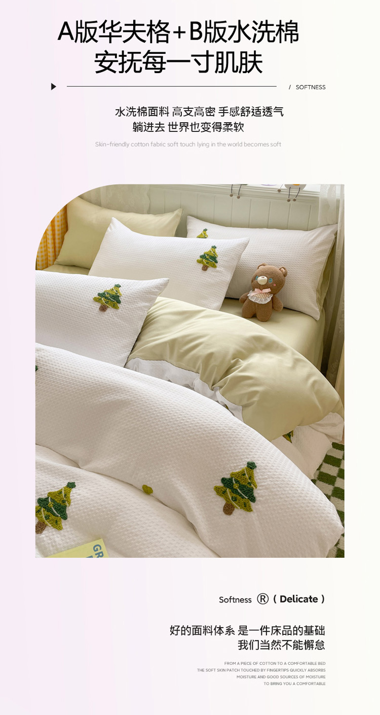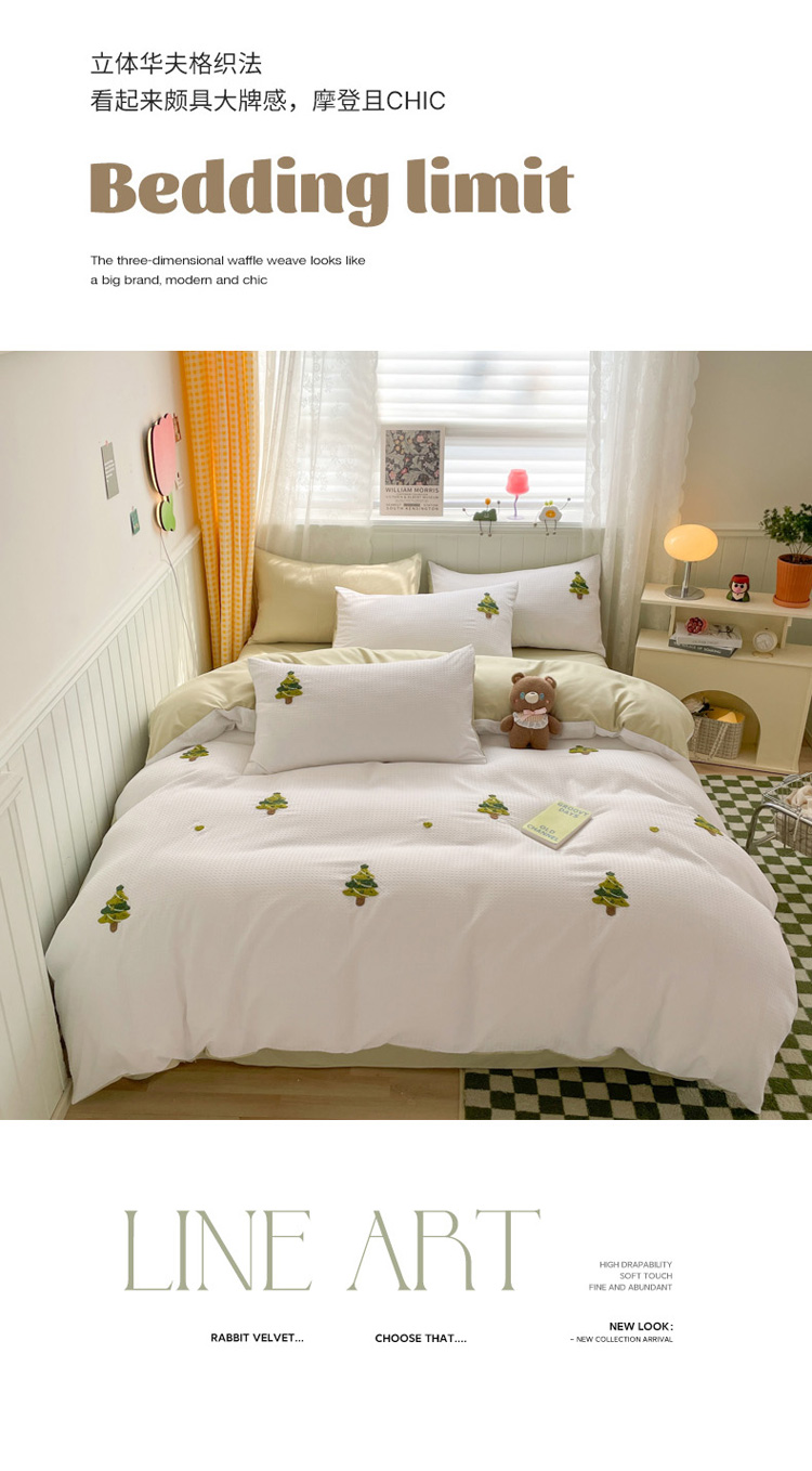 商品名称:慕澄 2023新款高克重小清新华夫格毛巾绣系列四件套 圣诞树-白+浅绿