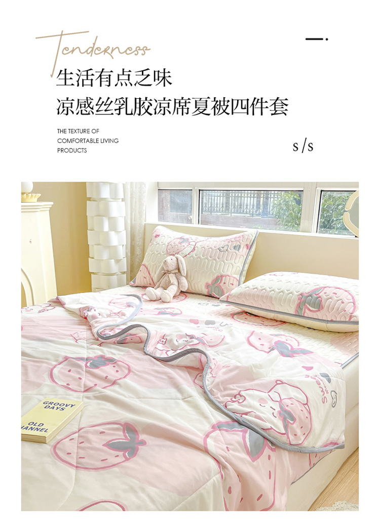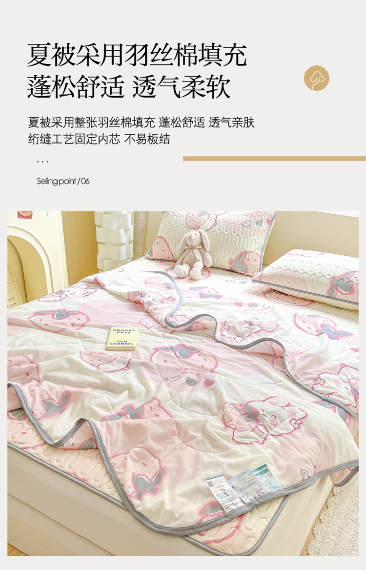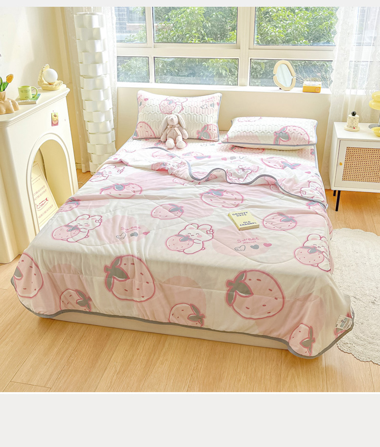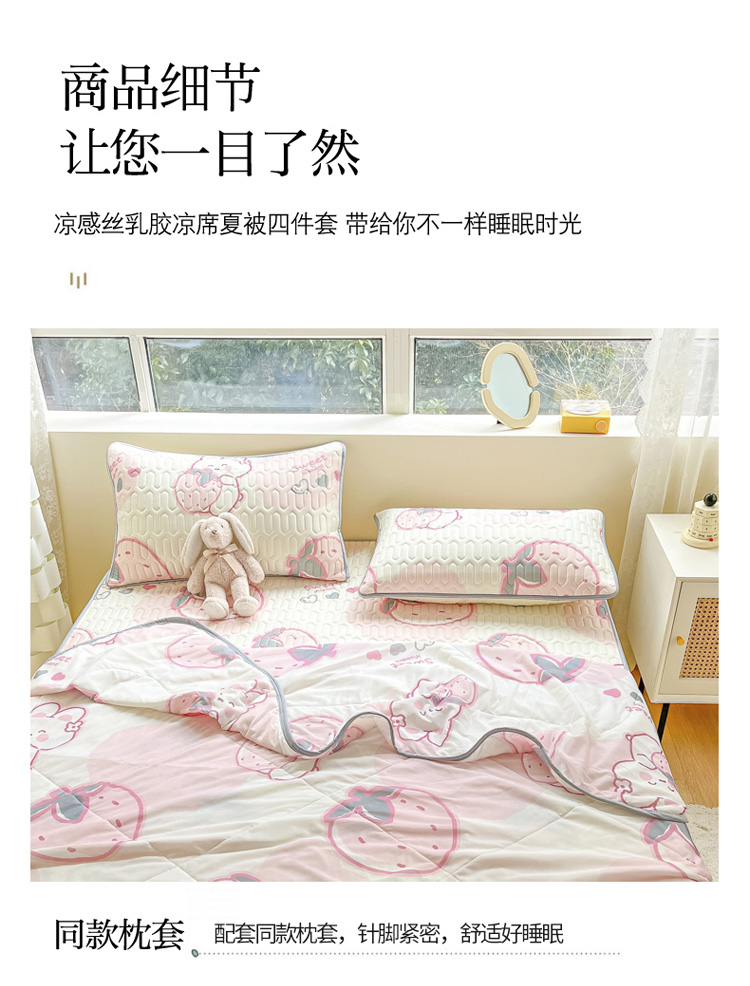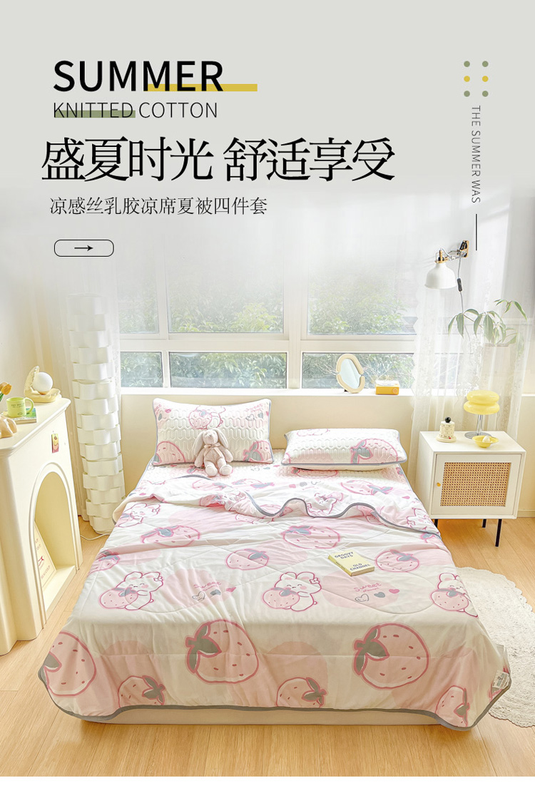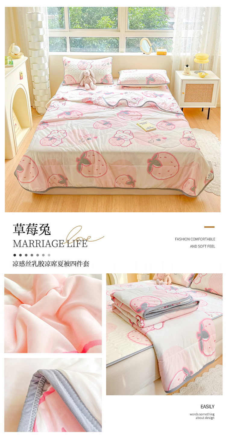 当前位置: 91家纺网 > 商品网购 > 床品套件 > 四件套 > 夏被四件套 > 沐慕2023新款凉感丝夏被四件套 草莓兔