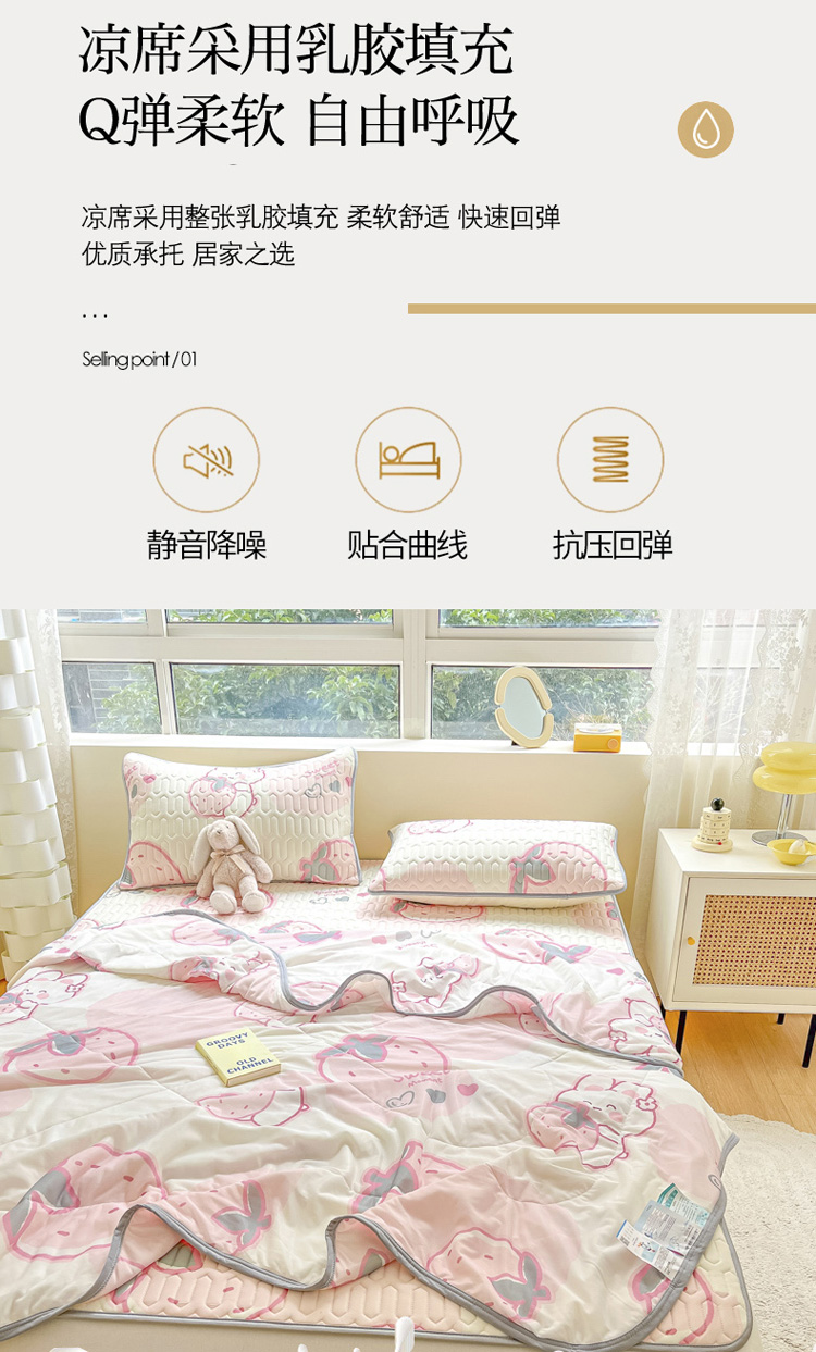 夏被三件套:90*200乳胶凉席+150*200夏被 | ¥90.00 |