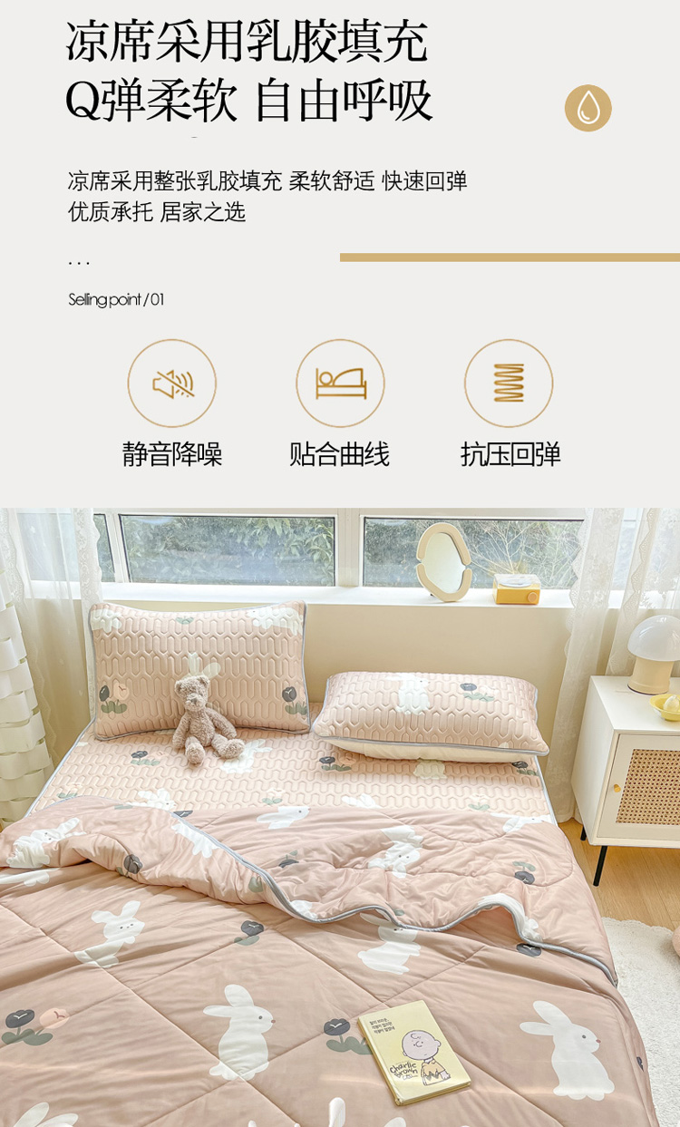 夏被三件套:90*200乳胶凉席+150*200夏被 | ¥90.00 |