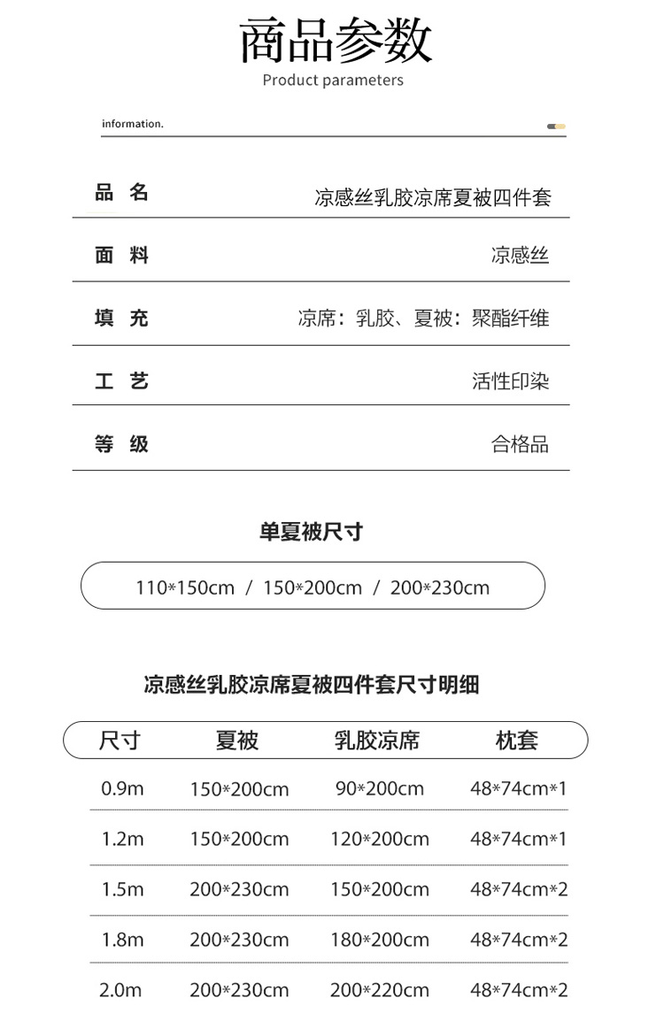 夏被四件套: 200*220乳胶凉席+200*230夏被 | ¥133.00 |