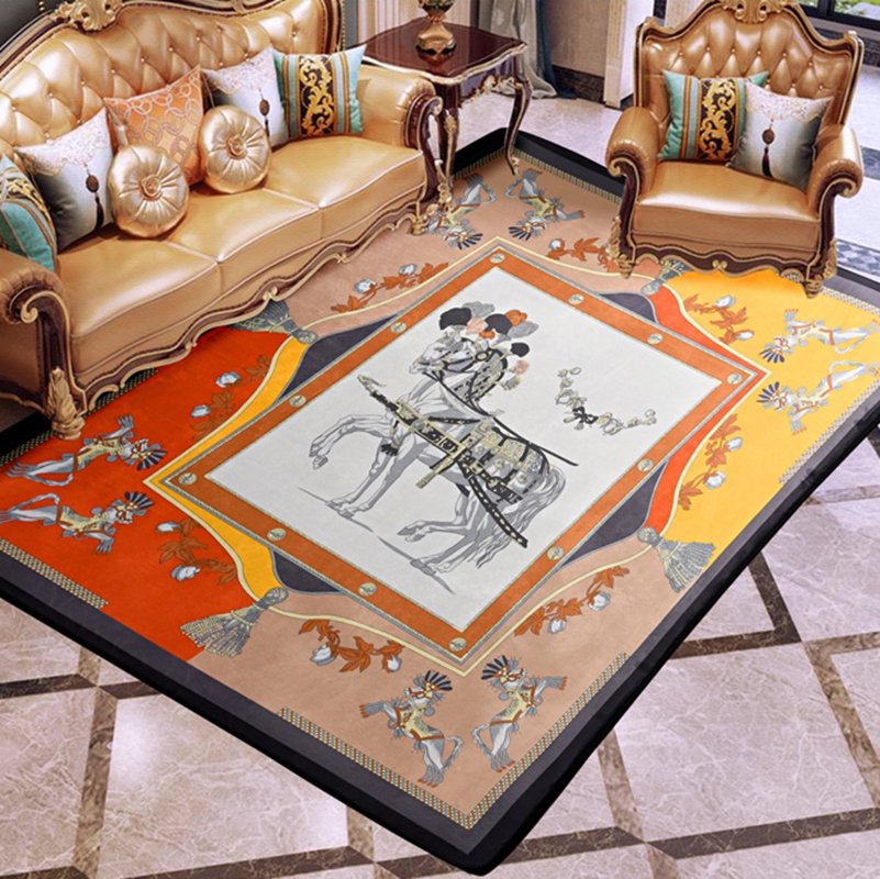 (总)爵仕 2023轻奢大地垫客厅大地毯复古,H 黑,H 灰,H 橘,H 蓝,豹,毕加索黄,布洛克,复古豹,皇家车,皇马,金色盛典,郎世宁,郎世宁 黑,马车,马首,群马,群马黄,群马蓝