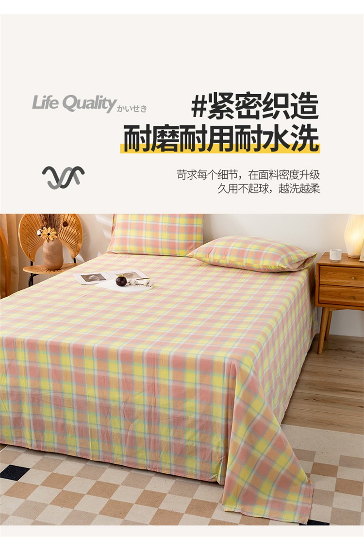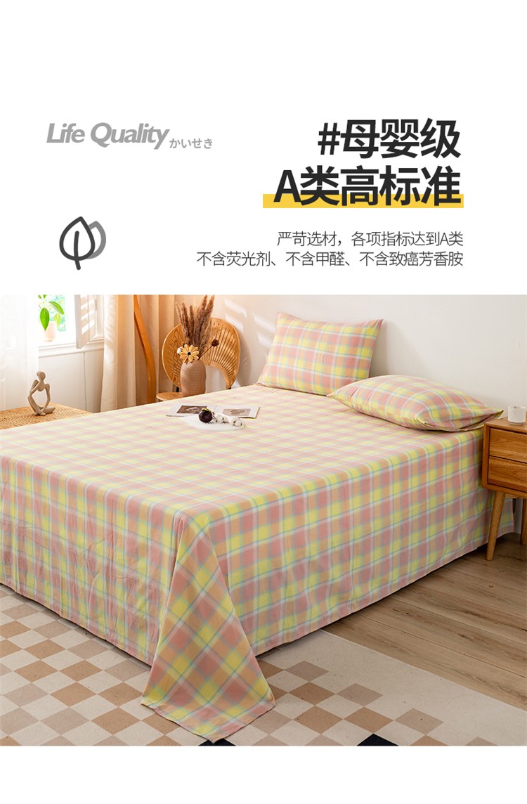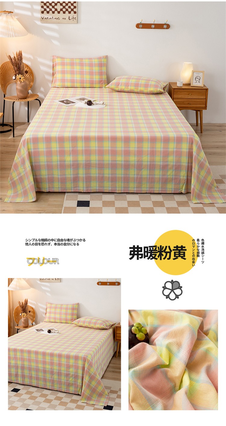 商品名称:九沐良品 新款A类色织水洗棉床单 弗暖粉黄