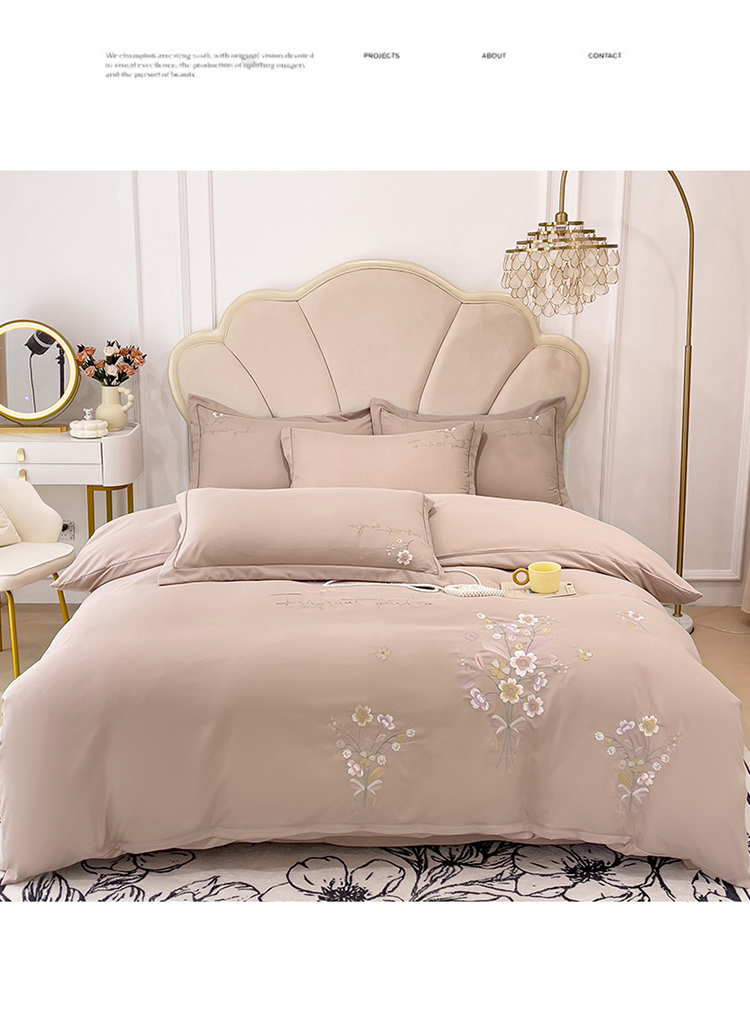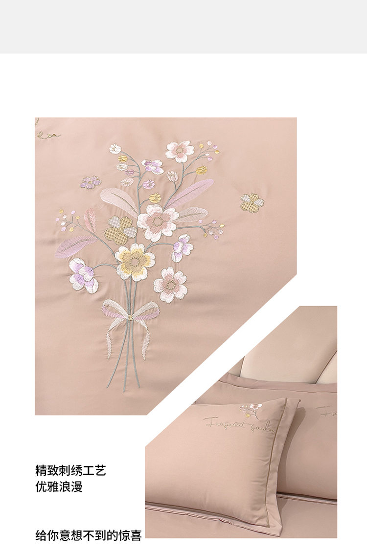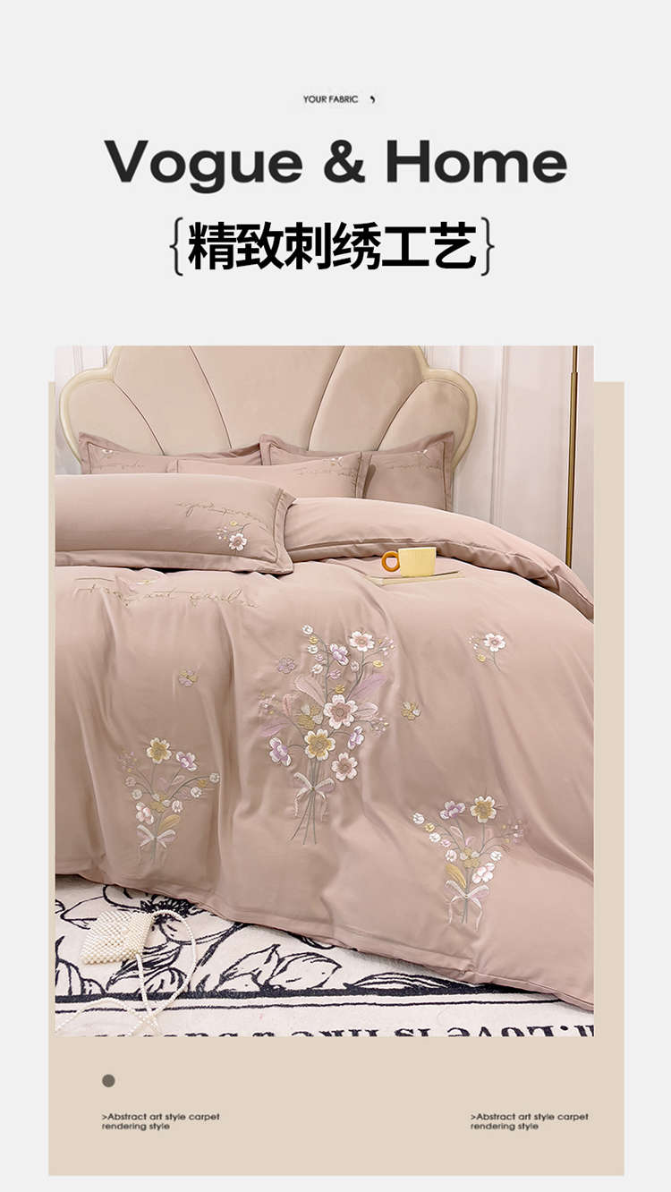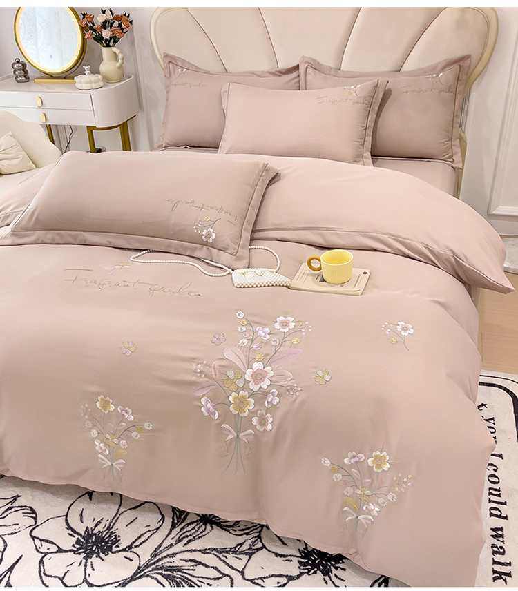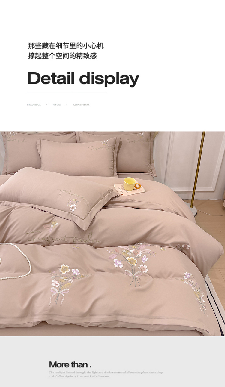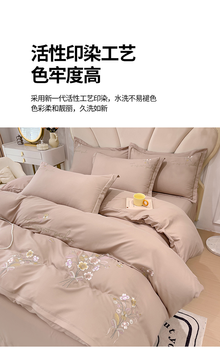 金米诺 2024新款水洗磨毛刺绣四件套 幸运花-浅卡其