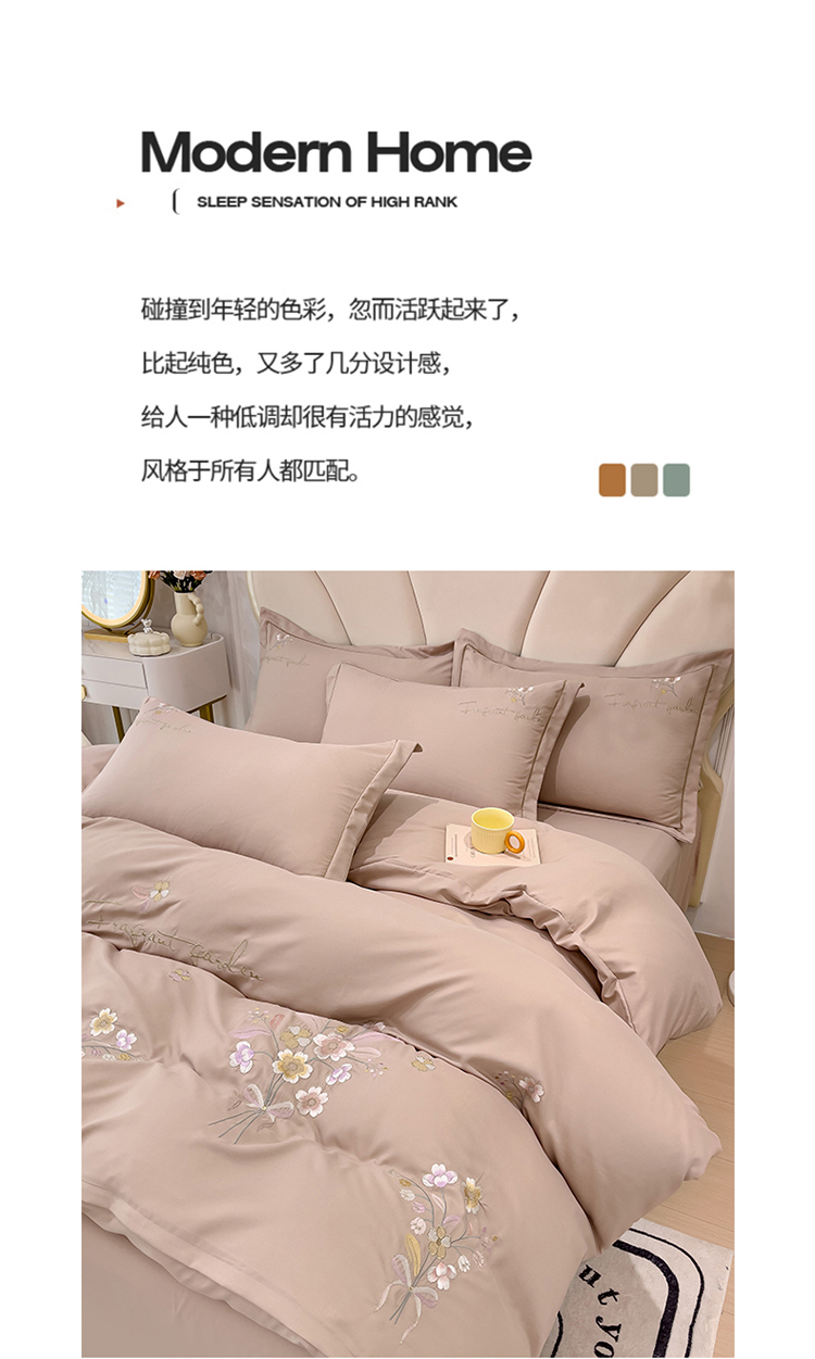 (总)金米诺 2024新款磨毛四件套刺绣系列,豆沙,翡翠绿,抹茶绿,浅姜黄,深蓝,烟灰,烟灰紫