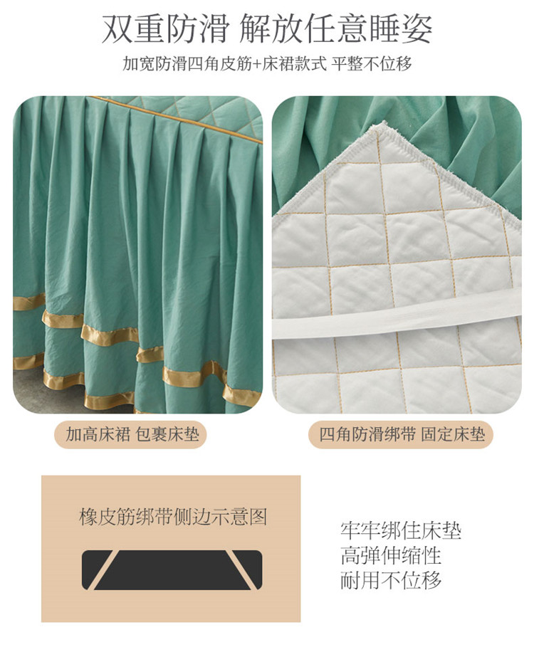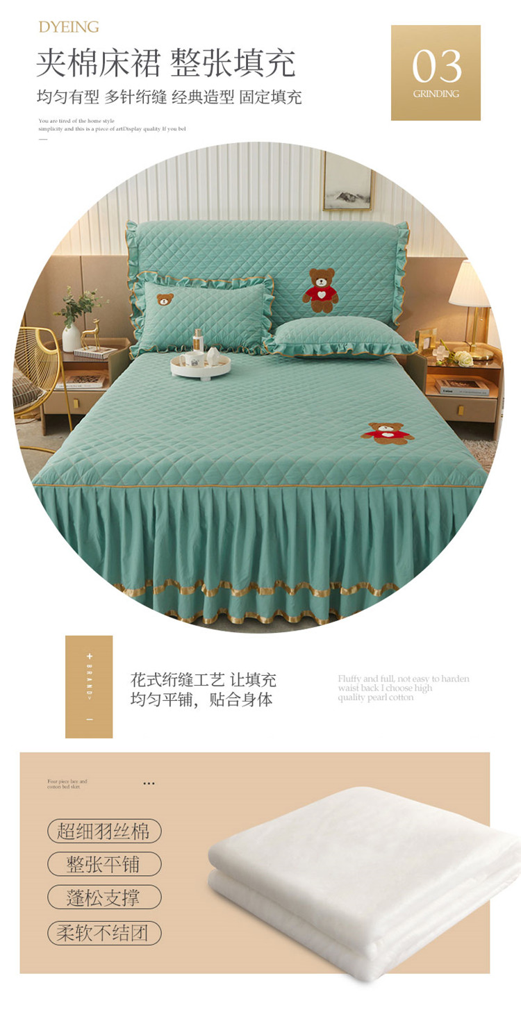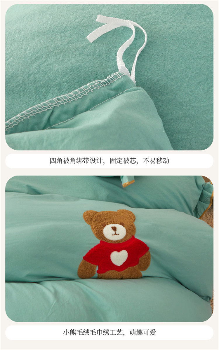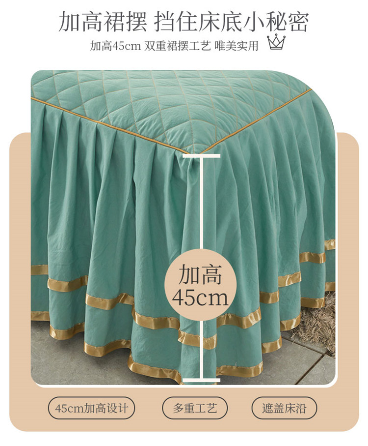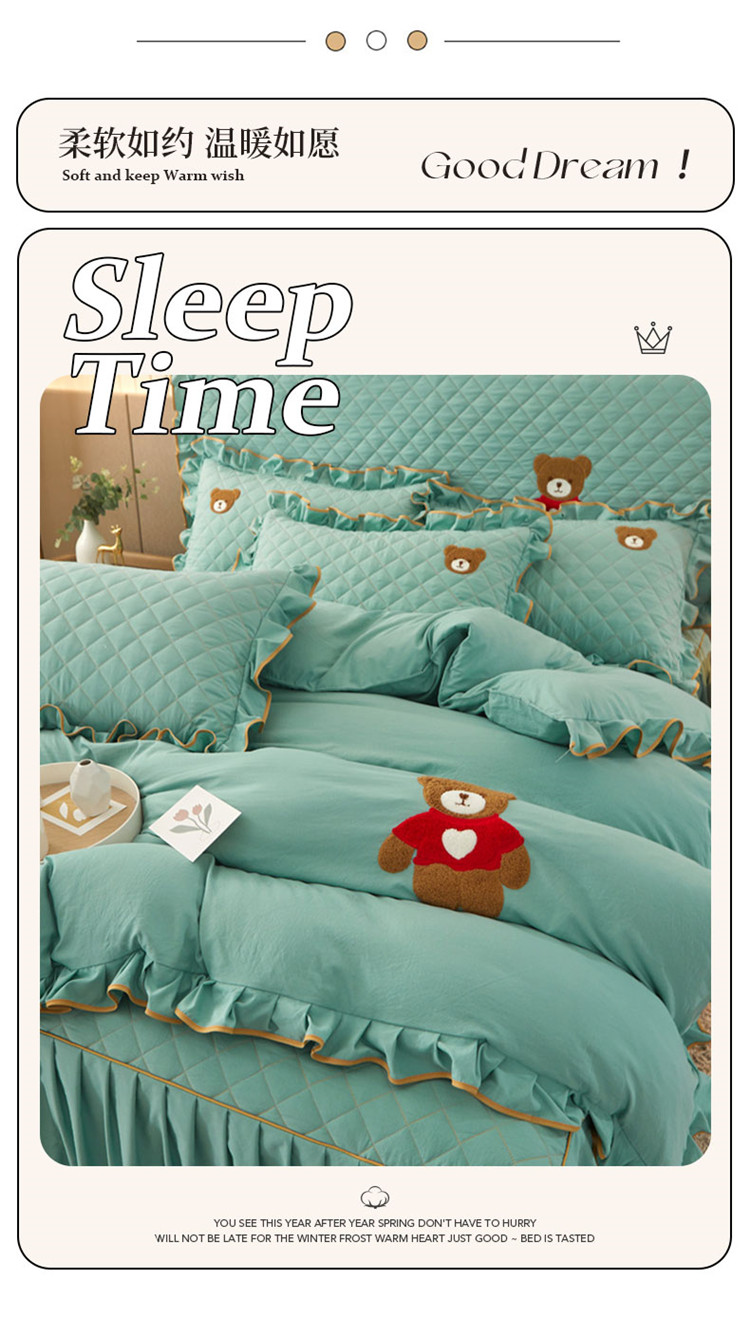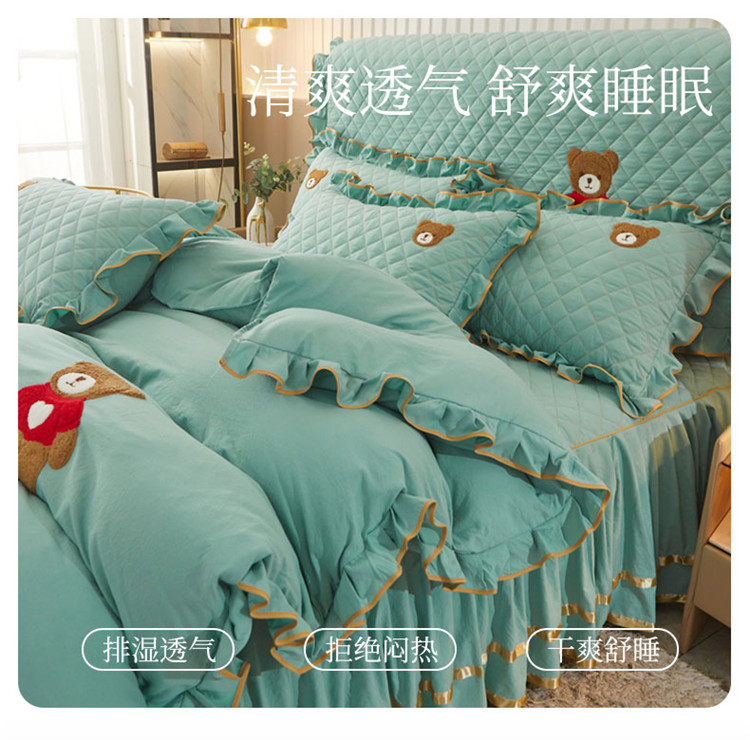 当前位置: 91家纺网 > 商品网购 > 床品套件 > 四件套 > 水洗棉四件套 > 屹成家纺 2024年水洗棉毛巾绣款床裙四件套 橄榄绿