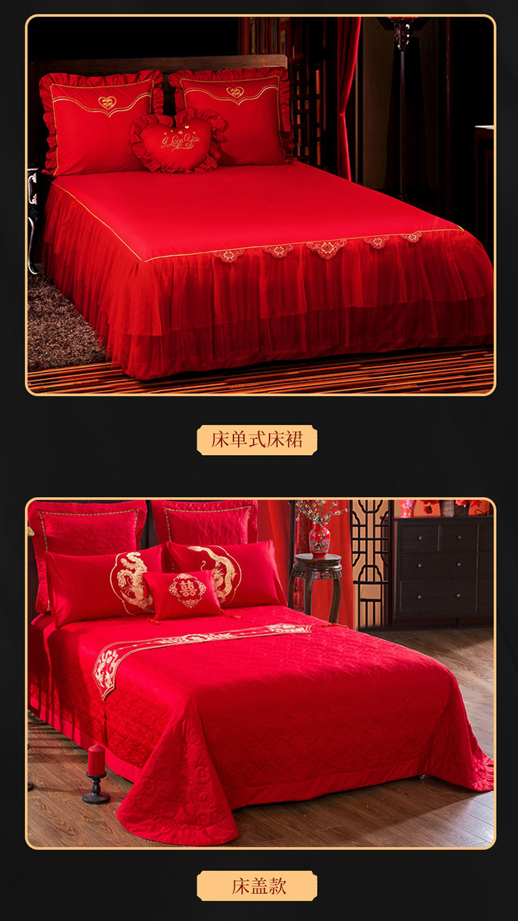 (总)慕她家纺 2025新款全棉纯棉婚庆四件套大红色刺绣多件套,百子贺喜,好运吉祥,吉祥龙凤,名门龙凤,天生一对,执手龙凤,至尊龙凤,子孙满堂