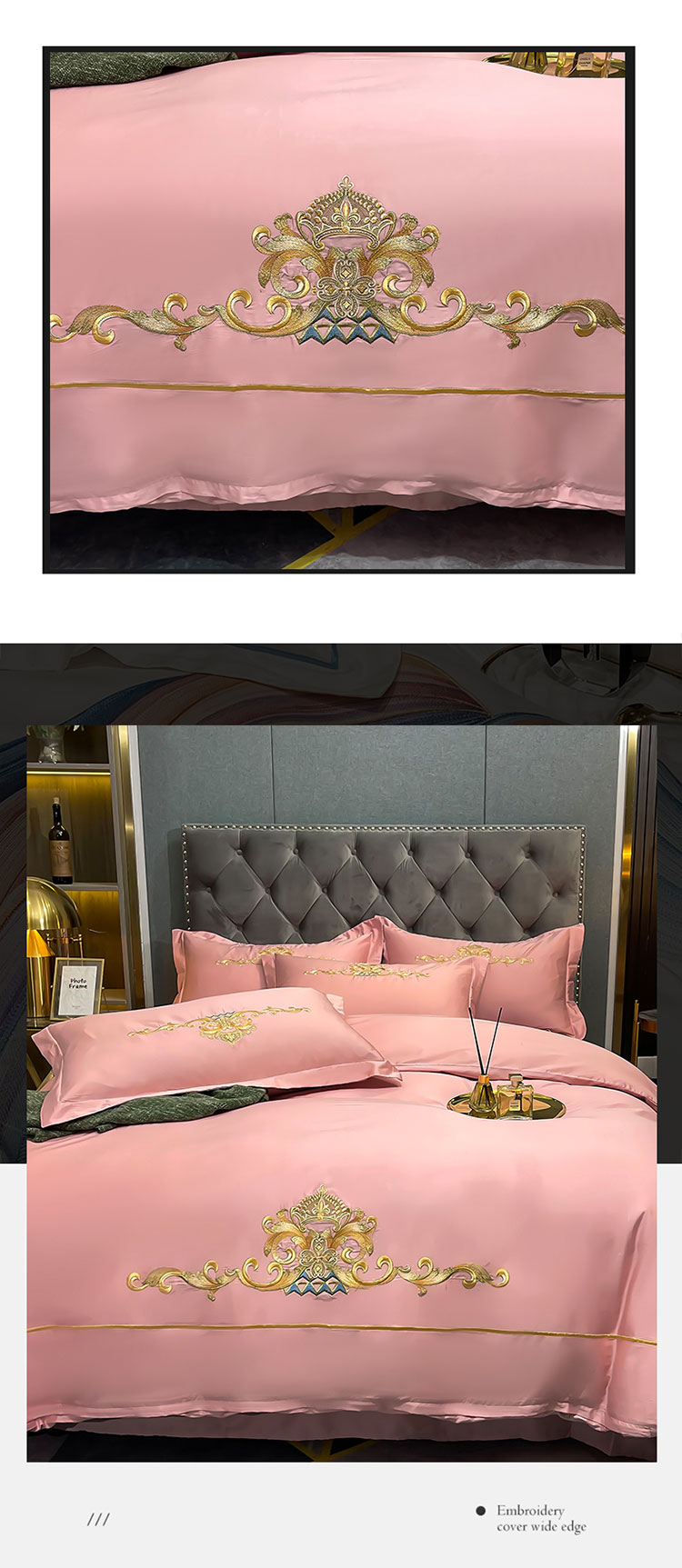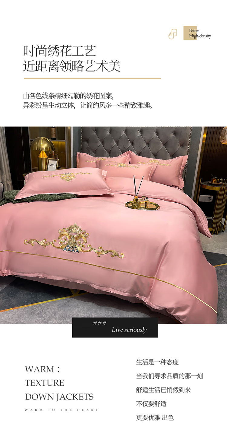 慕她婚庆四件套大红色结婚全棉纯棉刺绣花多件套直播 皇家风范豆沙