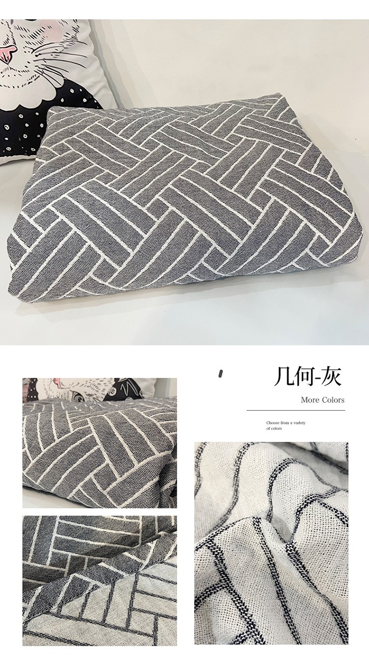 商品名称:卡奥 2024款花系全棉水洗三层纱毛巾被盖毯毛毯 几何-灰