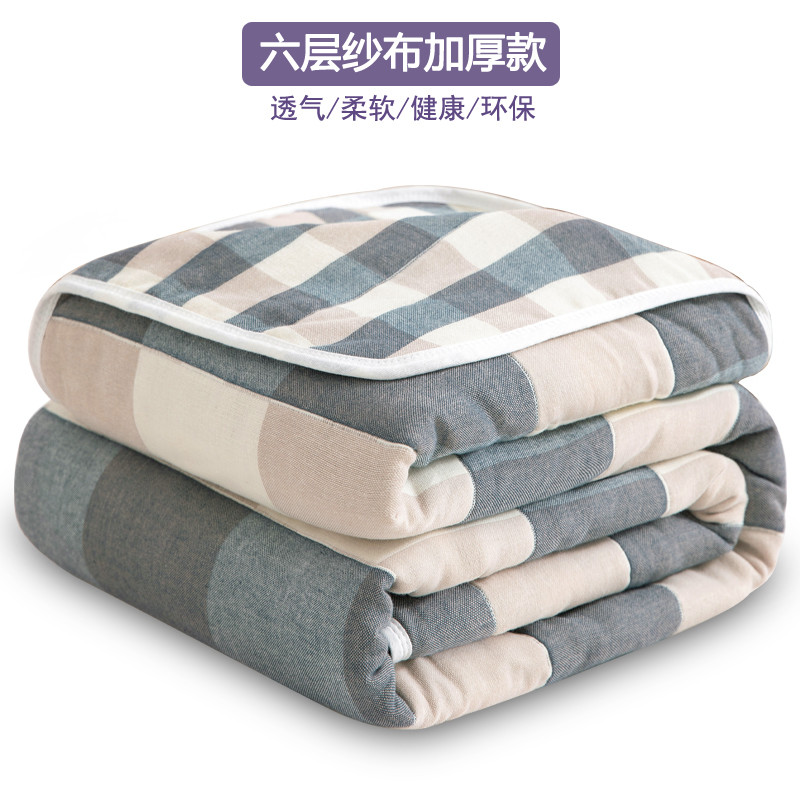 慕婷 全棉6层纱布毛巾被纯棉六层纱布毯 日式大格蓝