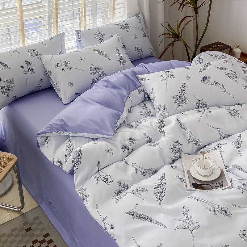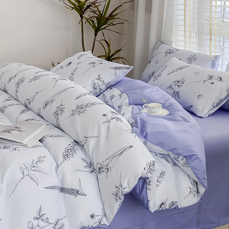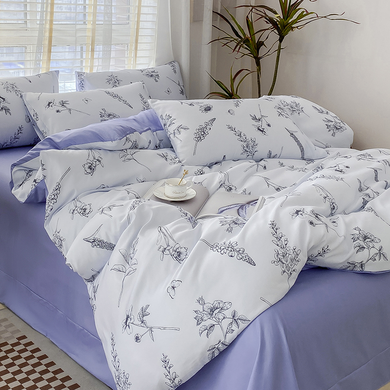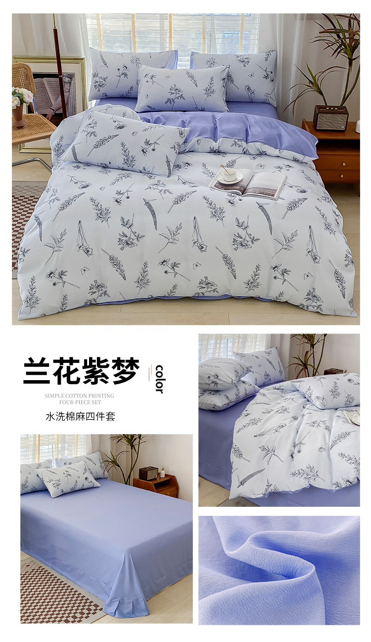 商品名称:优尚 2025新款双层纱水洗棉麻四件套 兰花紫梦