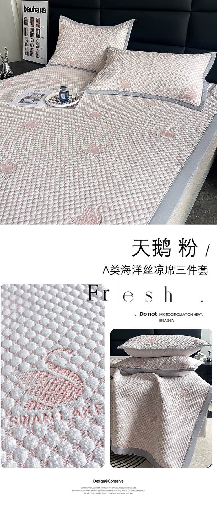 商品名称:花漾家居 2023新款A类轻奢宽边海洋丝凉感丝针织凉席三件套 天鹅粉