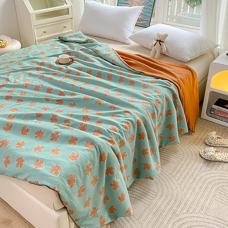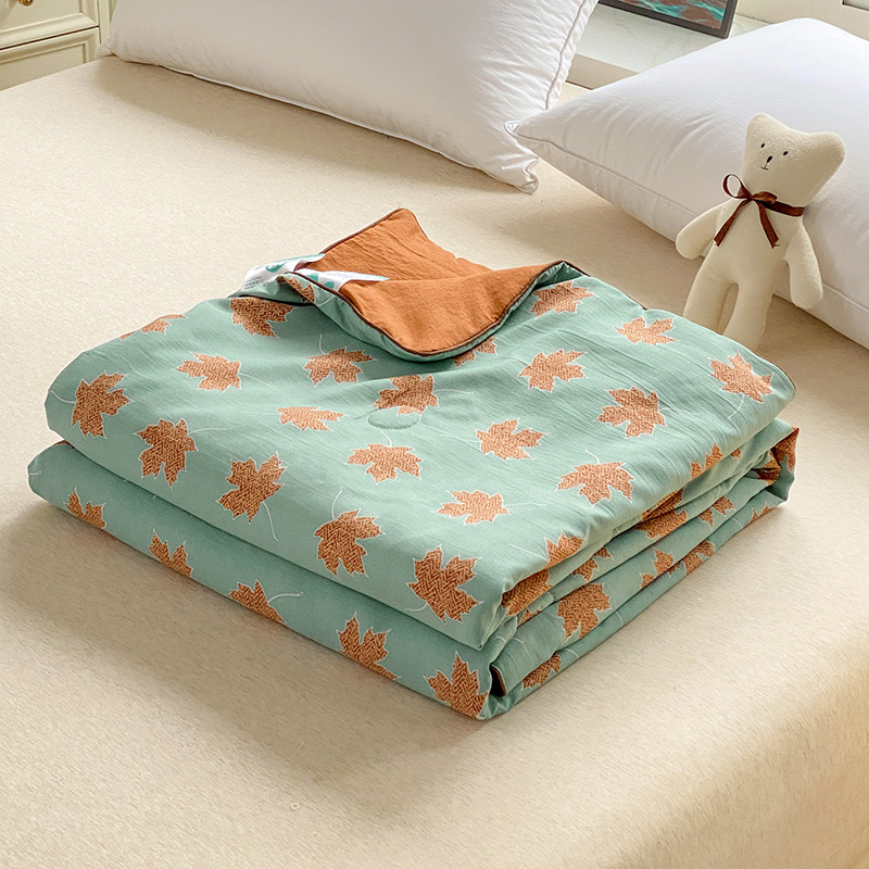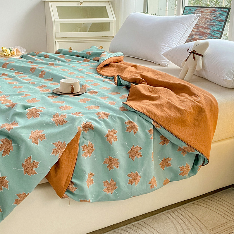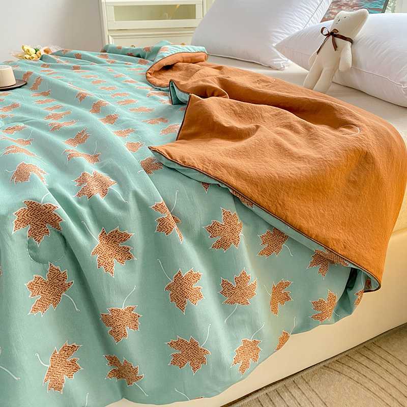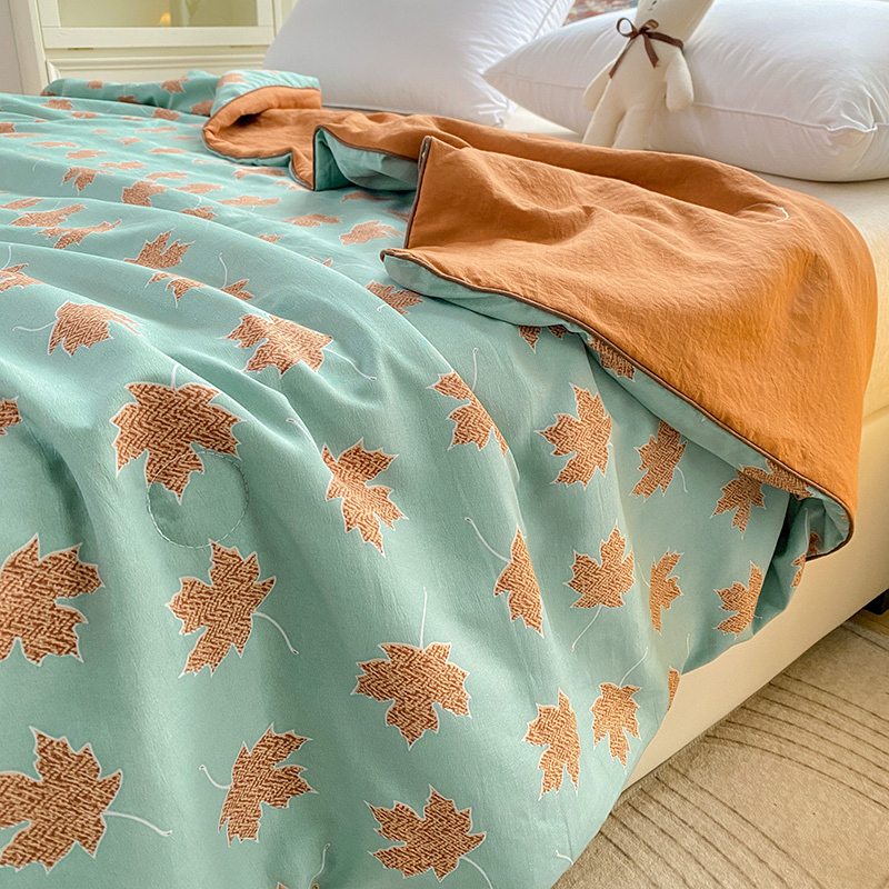 商品名称:畅畅家纺2023新款A类水洗棉麻双层纱夏被四件套 枫叶