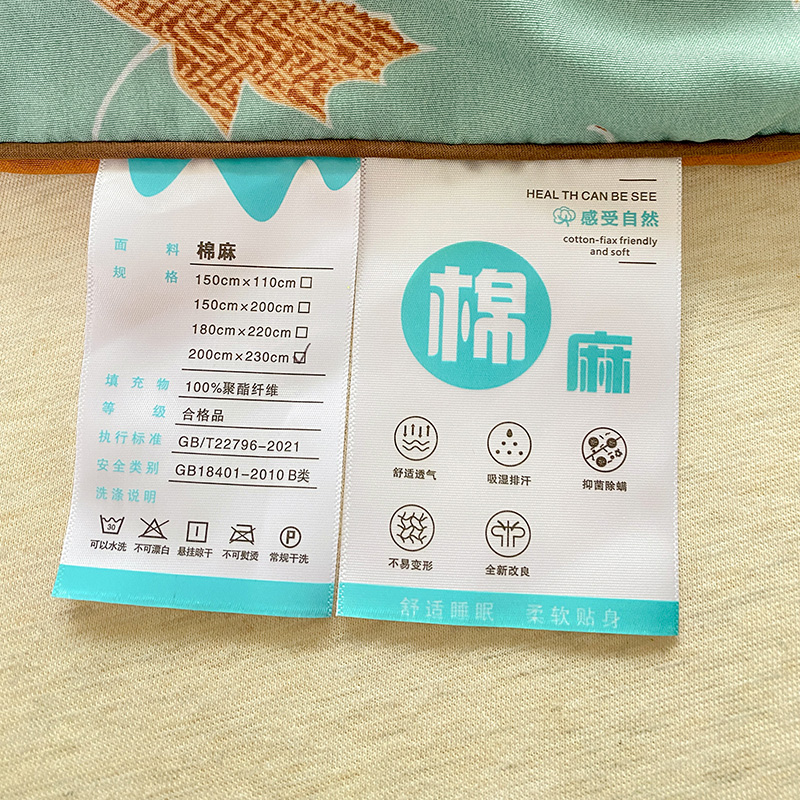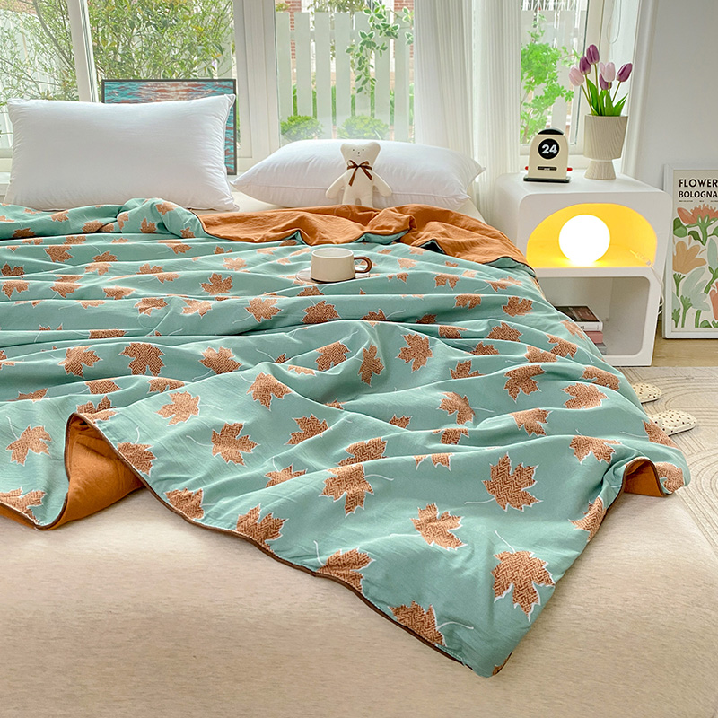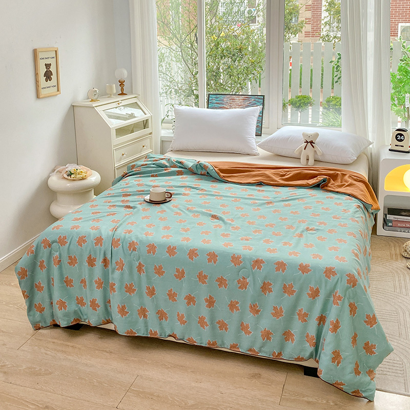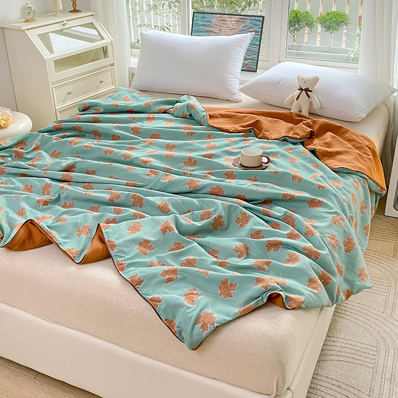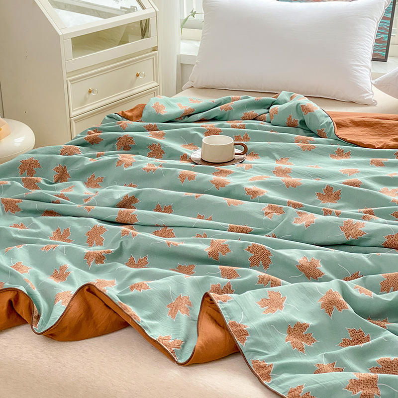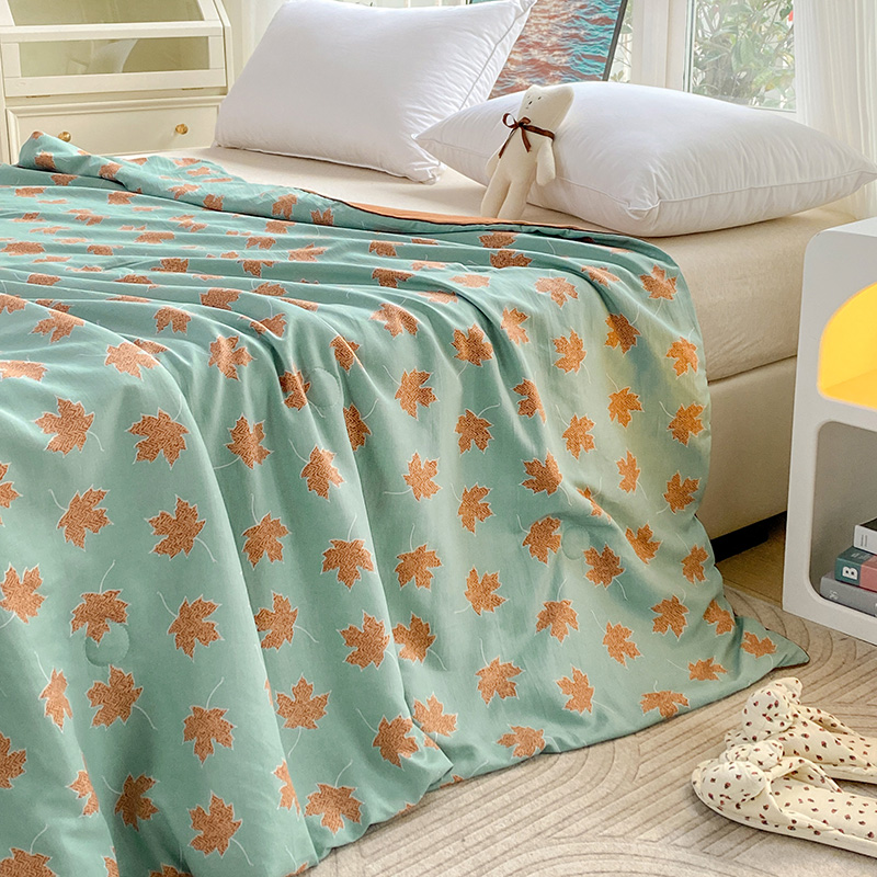 商品名称:畅畅家纺2023新款A类水洗棉麻双层纱夏被四件套 枫叶