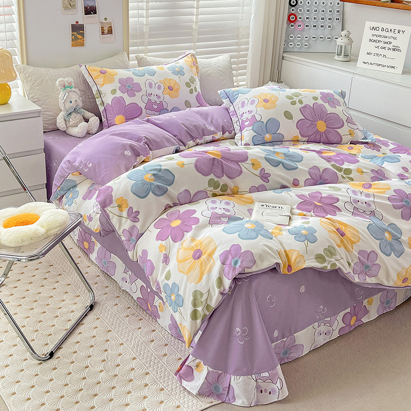 商品名称:乐童 2024网红直播爆款吊边+一字绣工艺款四件套(七) 紫柑棠
